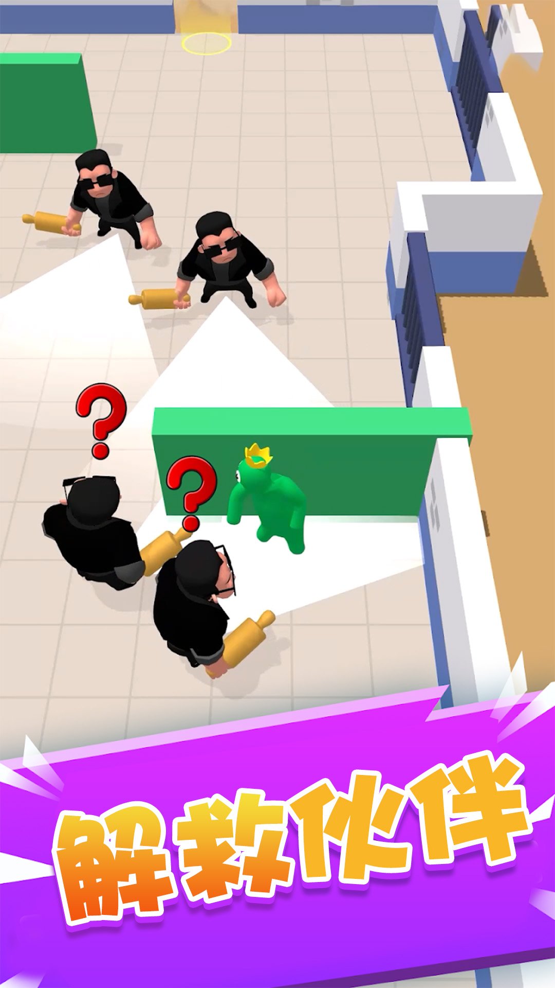 使用摇杆控制角色在场景内移动,当角色靠近家具时,你可以融入其中,让敌人无法识别;悄悄靠近朋友,并解救他们!