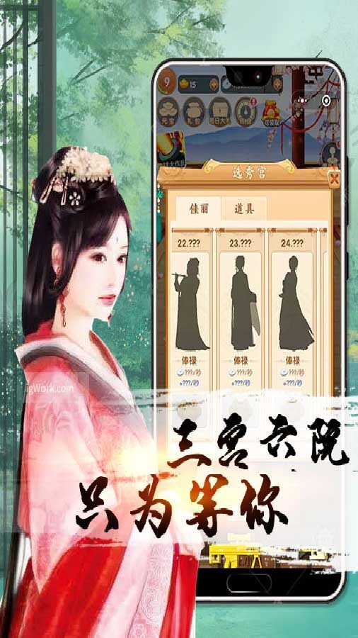 古风题材合成经营类游戏。从一介民女通过选秀入宫,一步步获得皇上的宠爱,你将能够培养出一名属于帝王最好的妃子,加油吧!