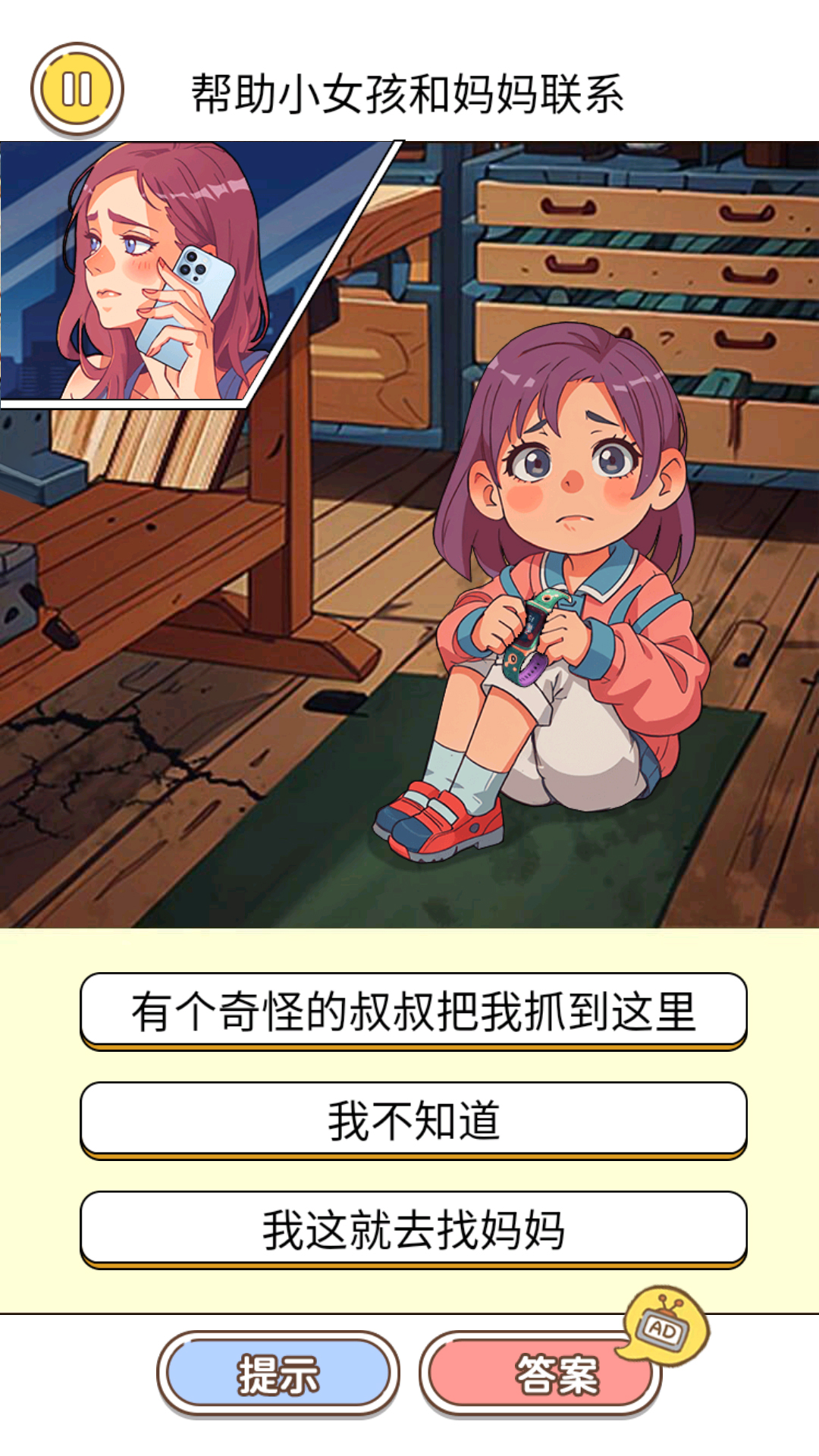 《你个大聪明》是一款休闲益智游戏,可怜的小姐姐误入了案发现场,帮小姐姐想办法让歹徒放下戒心,成功逃离险境吧,游戏内还有超多游戏,快来试试吧。