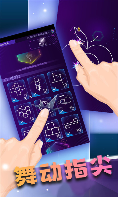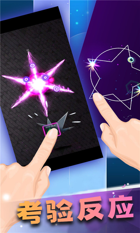 《指尖舞动》是一款轻松且有趣的休闲益智类型手机小游戏。游戏操作简单,画面精美炫酷,时间短小,适合各年龄段玩家体验。游戏的操作简单,规则也是很简单,随着音乐的律动点击手机屏幕,弹出音符。音符会随着音乐的旋律前行时快时慢,如果把握不好时机,音符就会向撞,游戏失败。正确把握游戏的节奏,从不断循环的律动中获得满足感,舞动你的指尖,炫出别样音符。