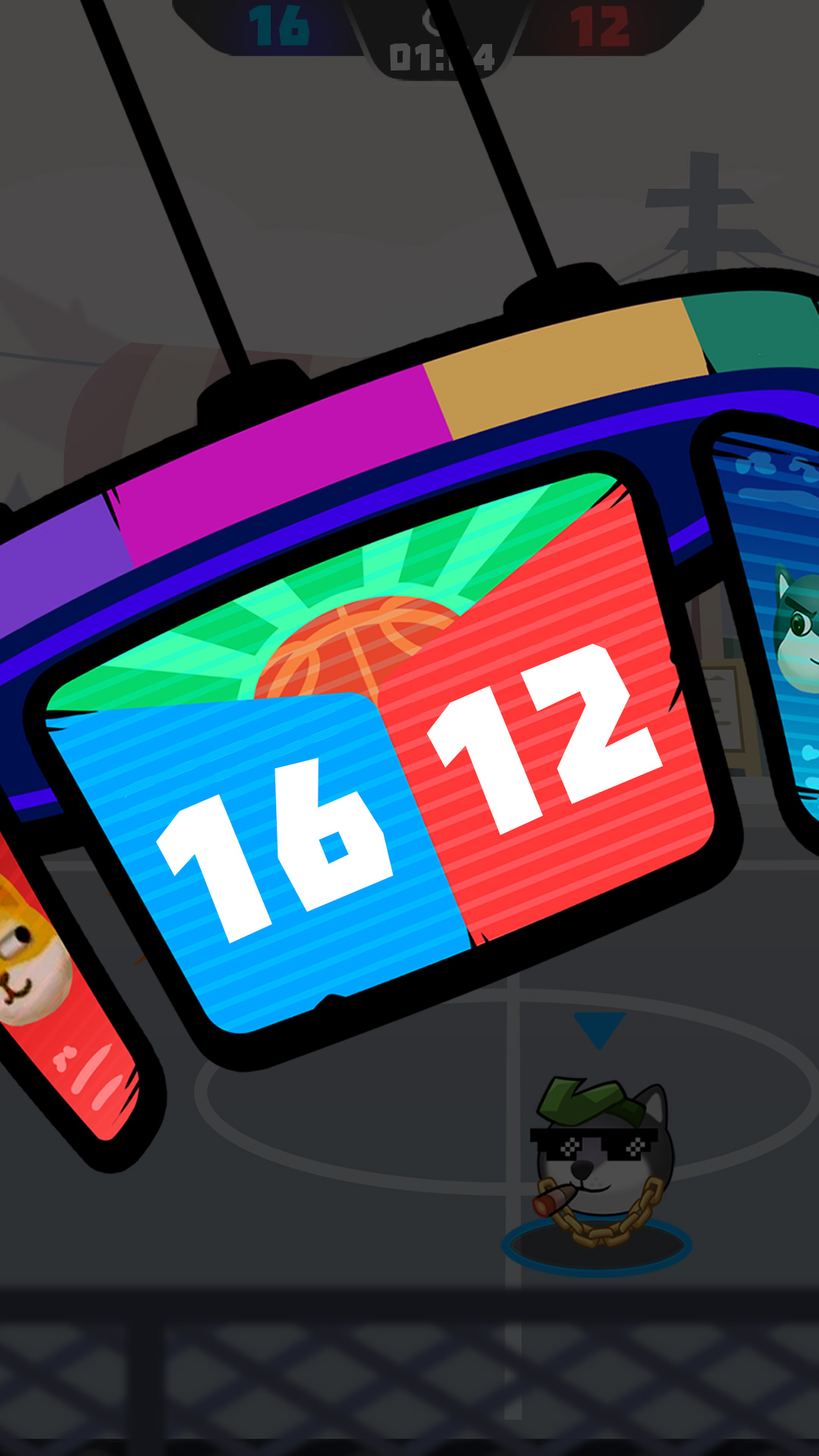 两人组队,进球多者获胜,你可以先击倒对手在进行投篮。