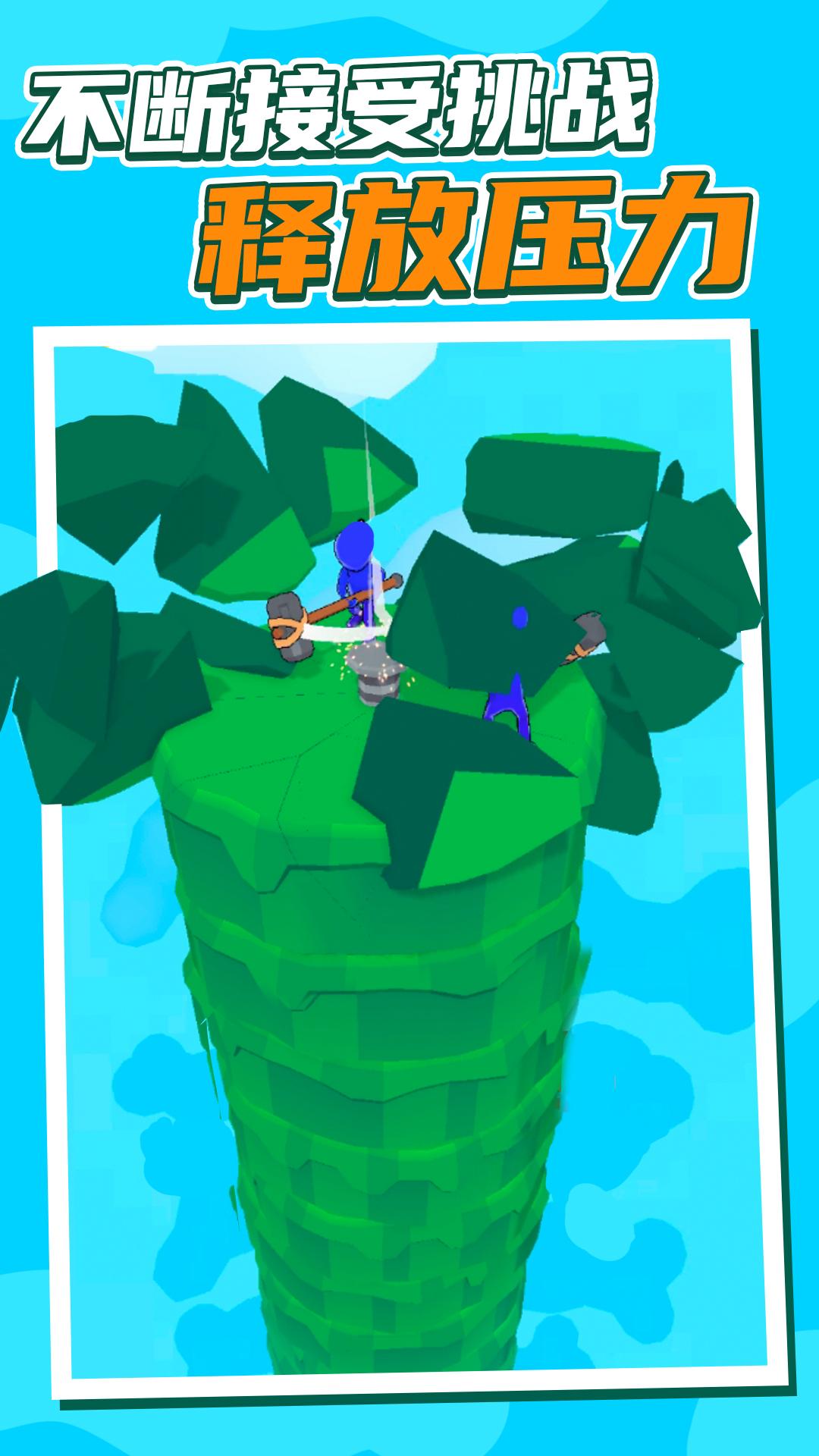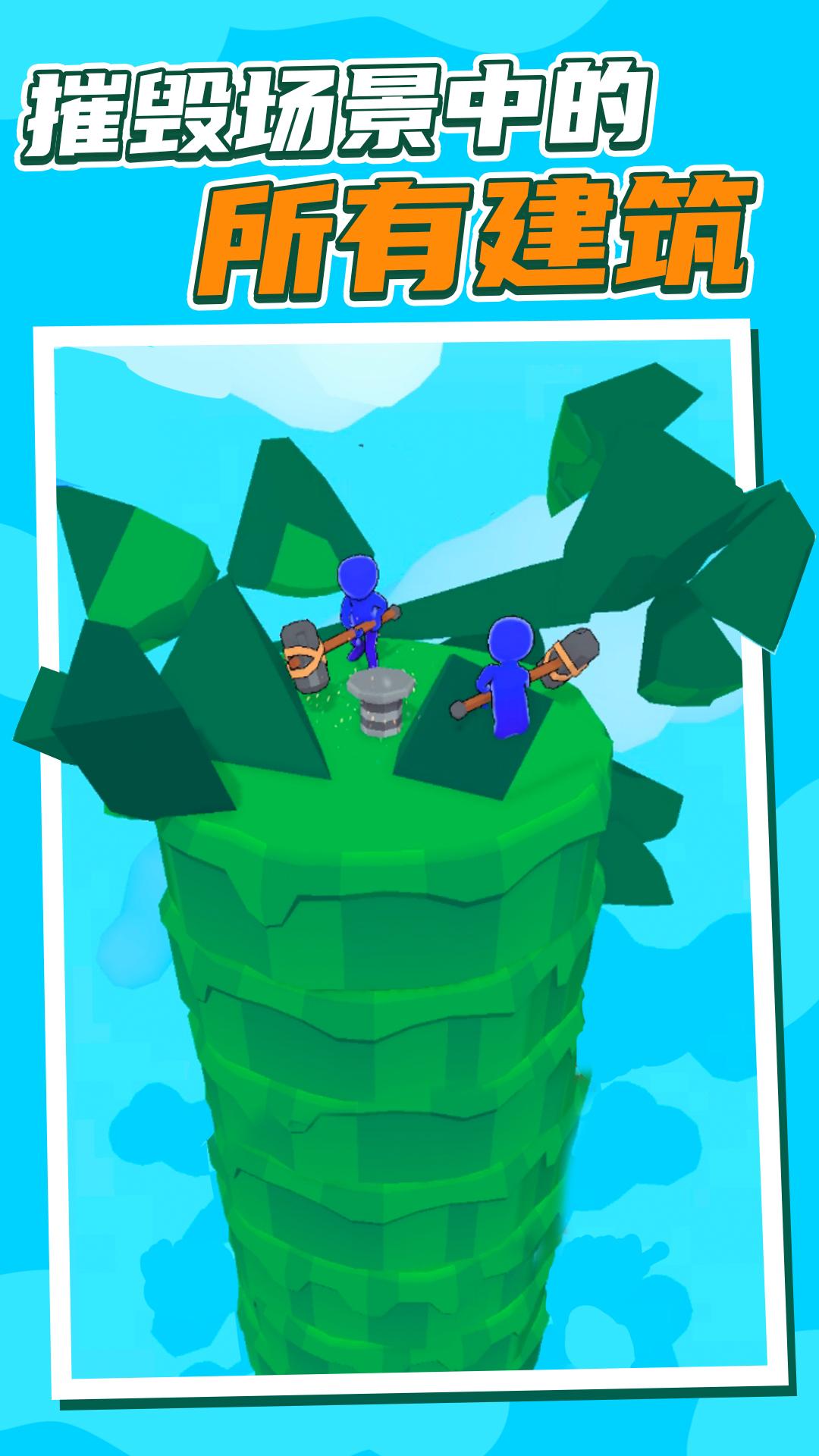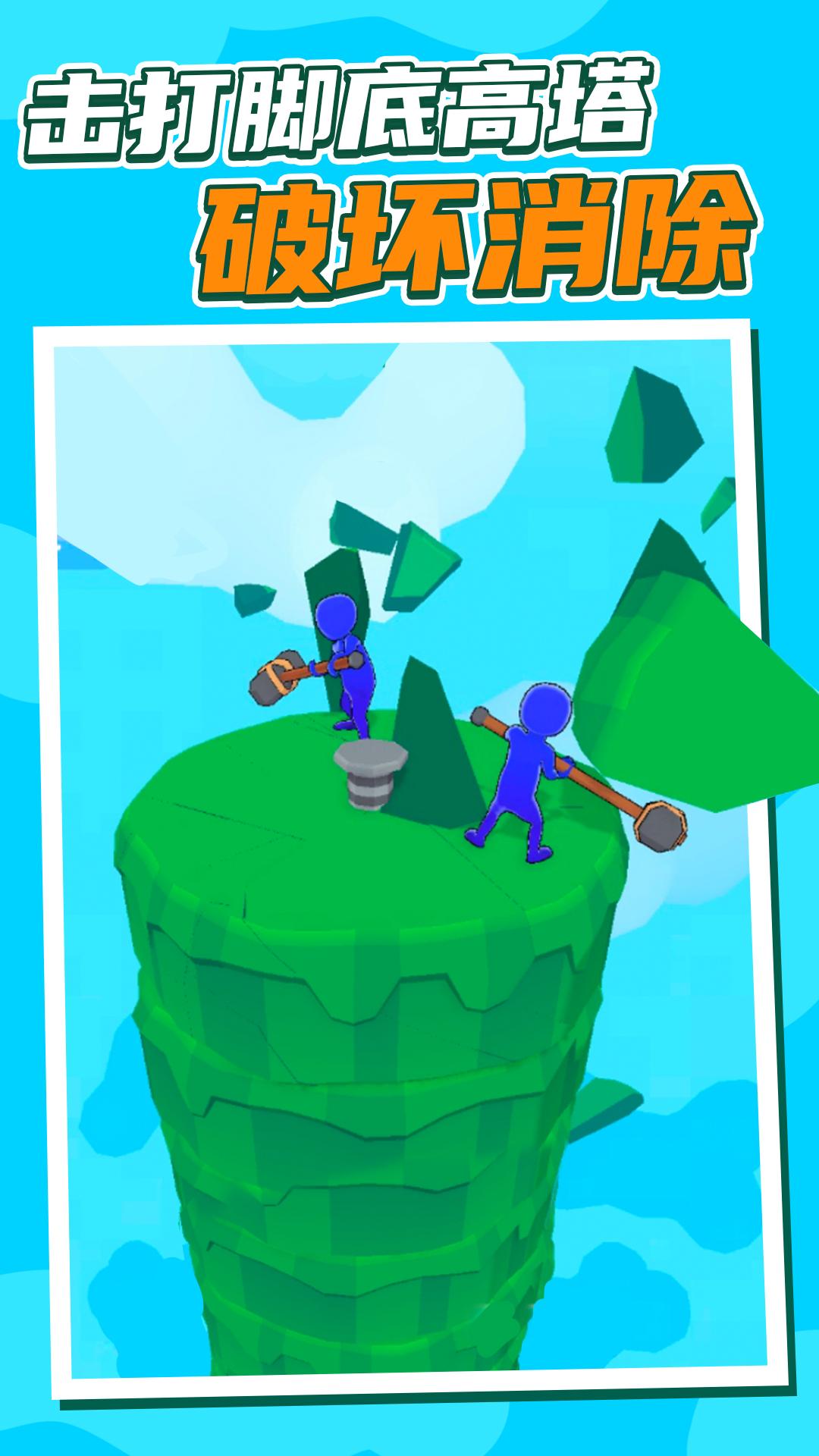 巨锤冲冲冲是一款游戏玩法轻松休闲的模拟破坏手游,在这款游戏中玩家将体验简单的破坏玩法,玩家将操控角色挥动锤子,击打脚底的高塔,将塔上的层层全部破坏消除即可过关!
