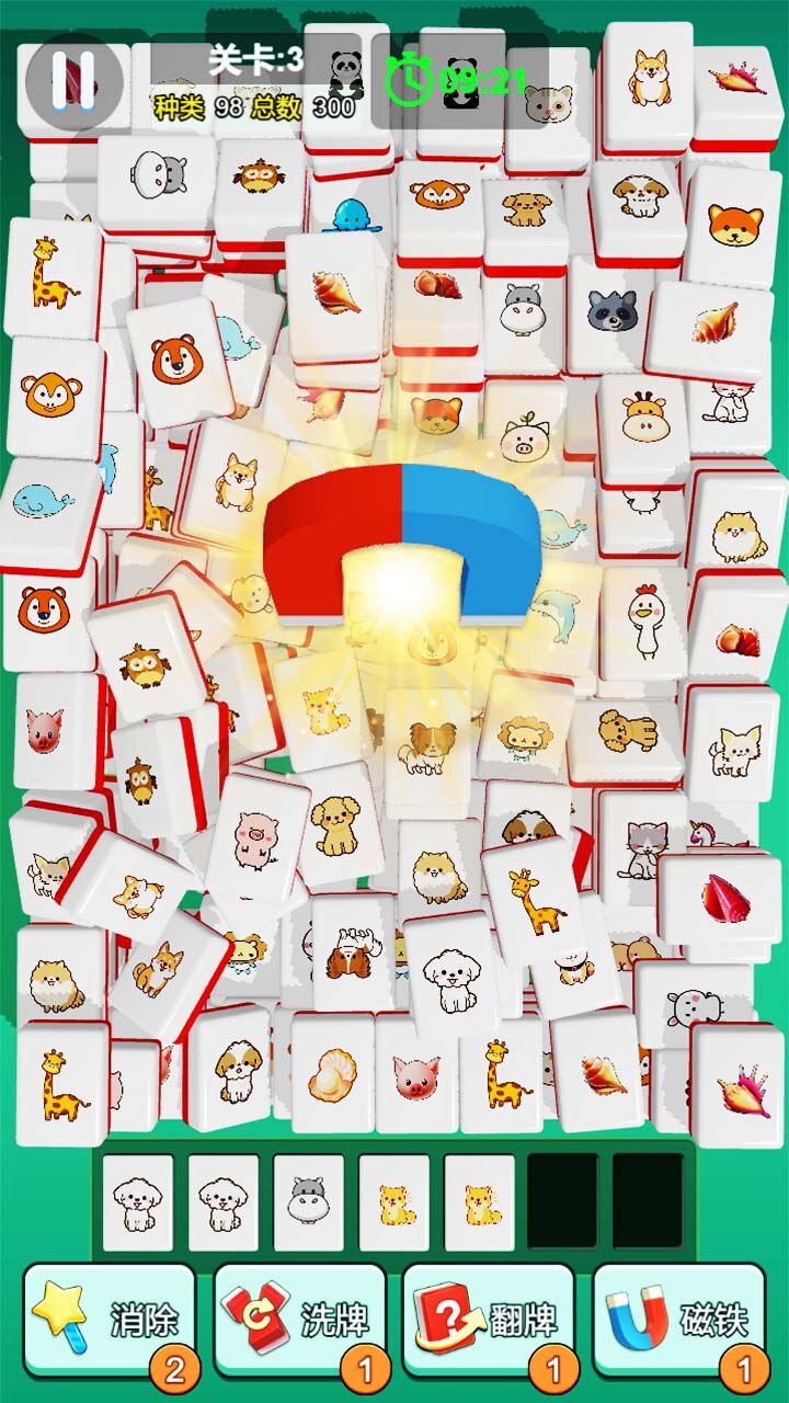 快来玩天天碰碰消啦!在这个游戏里,你需要做的就是消除那些相同的麻将小方块哦。