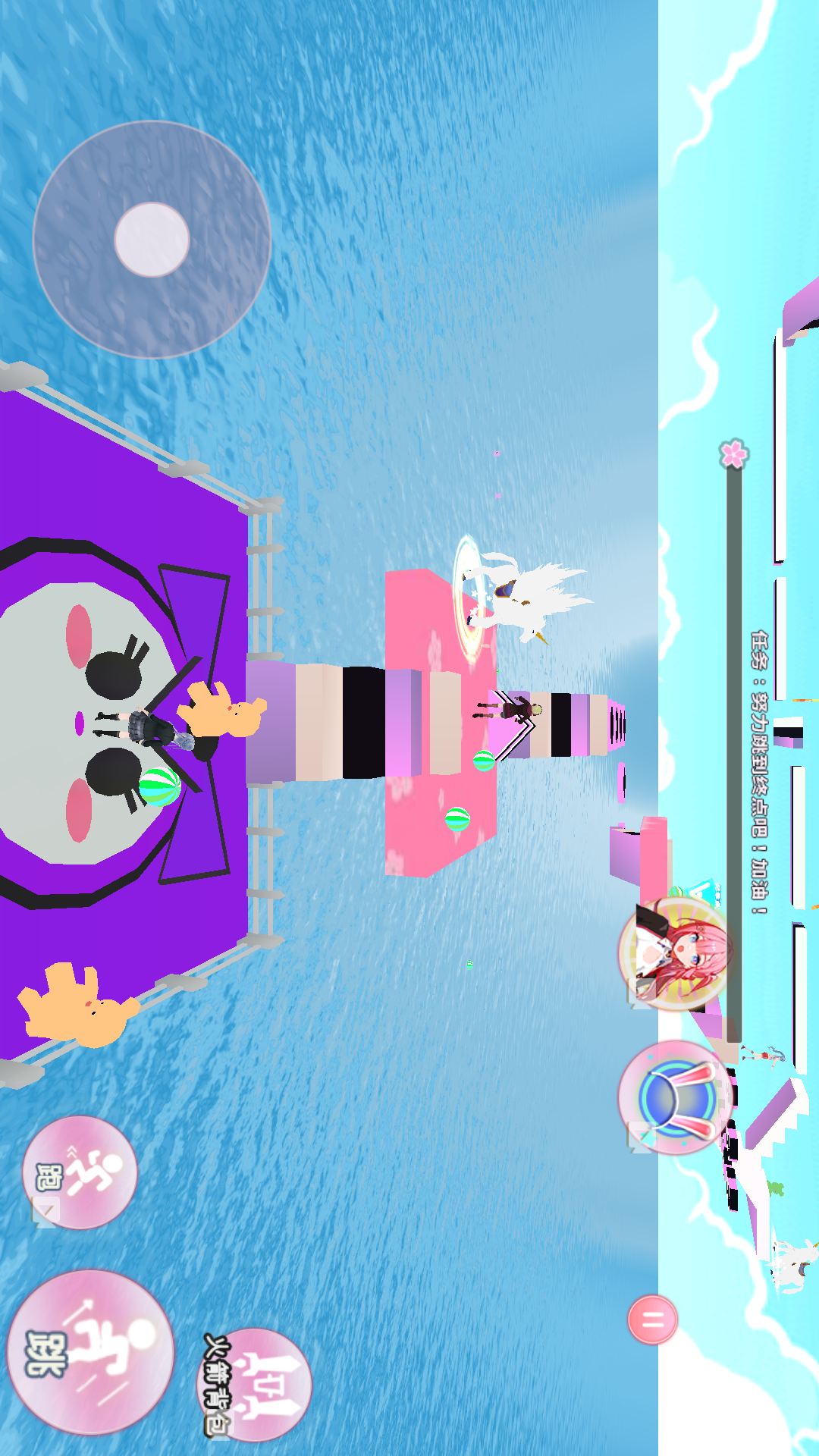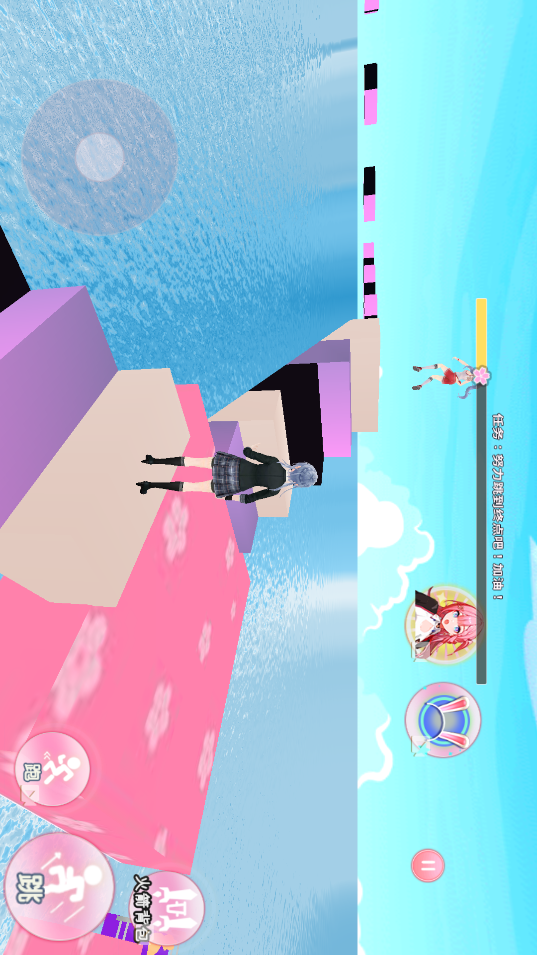 《樱校绝美女团》是一款独具魅力的樱花类休闲跑酷游戏。游戏中,美丽的樱花女神团在水上乐园,开启了一场惬意的跑酷冒险。她必须凭借自身能力,穿越各种精心设计的机关,跑酷闯过重重障碍,到达终点!游戏内提供了多种道具和丰富的角色可供选择,大大增加了可玩性。你将在浪漫的樱花场景中,感受紧张刺激的跑酷节奏,帮助樱花女神摆脱困境。快来加入这场充满奇幻与挑战的跑酷之旅吧!