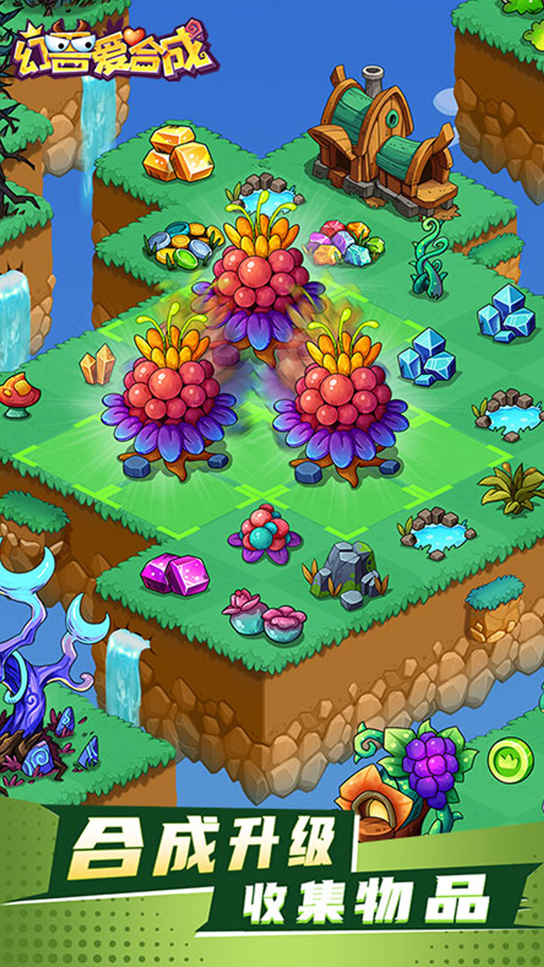 这座小岛可不简单呢,刮风、下雨还有黑夜的时候,天上真的会掉落东西(是真的哦)!看到奇迹就合成!一直合成到满级,它就会疯狂撒下奖励;看到蛋蛋就合!合着合着幻兽的力量就迅猛提升,还能解锁土地呢;相同的物品通过三合一或者五合二,拖动就能合成升级。