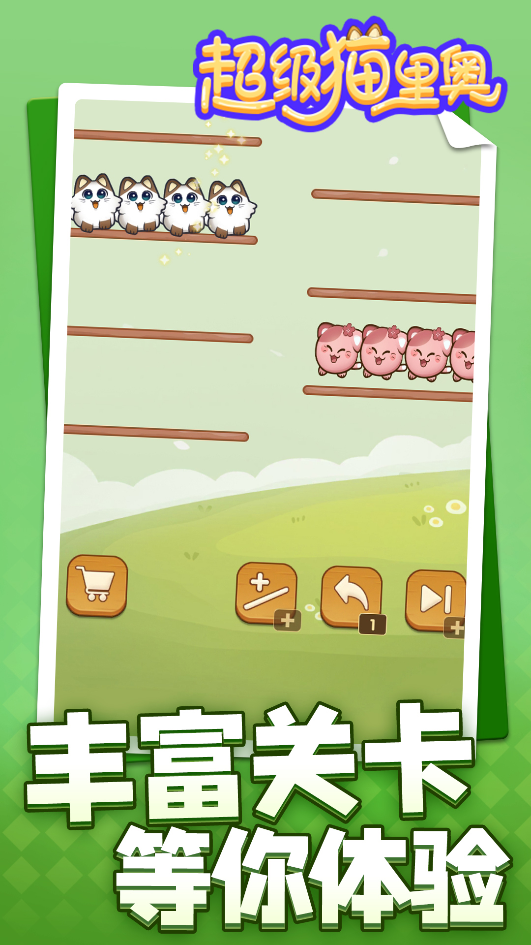 《超级猫里奥》超多可爱的猫咪,不同的游戏关卡设定,你需要对关卡中的猫咪进行分类,整个游戏过程非常的放松,考验你的眼力,仔细观察就可以完成更多的闯关,享受更多精彩的休闲时光。 主要特色: 1、非常有趣的分类益智游戏,你所需要做的就是将相同的猫咪进行分类。 2、游戏的色彩元素非常的丰富,眼力与动手能力结合,尽情的参与挑战吧。 3、游戏的玩法非常的简单,没有任何级别限制,简单和令人上瘾的游戏。