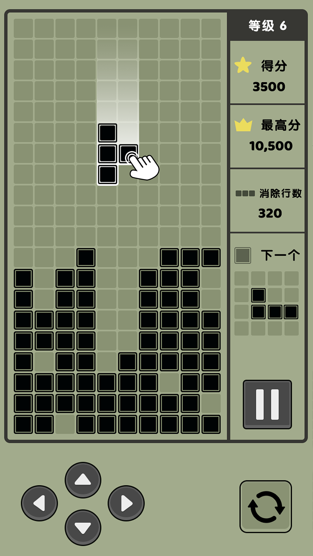 触摸模式则需要玩家点击屏幕旋转变化当前的方块组合,上下左右4个方向的滑动,则可以控制方块的移动和加速下落。