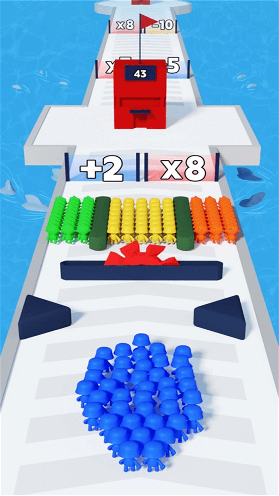 在这里,你将成为一位倍增大师、领军出征,与玩家们一起燃起热血,展开一场激烈的大决战! 每个玩家都可以利用大炮等武器喷射大量的士兵,并带领这些士兵进攻敌人获取胜利。但这不仅是一场简单的行动,而是一次真正意义上的挑战:行动路线中会出现各种不同形式并且会变换的倍增门,帮助玩家增加士兵,并且也会有一些障碍物消耗士兵,迫使玩家随时作出明智的决策,才能保持领先优势。 战斗之余也可以尽情地享受收集各种大炮以及士兵的乐趣。赢得更多的货币即可获得更强大的武器和士兵,使你在战场上更加威风。
