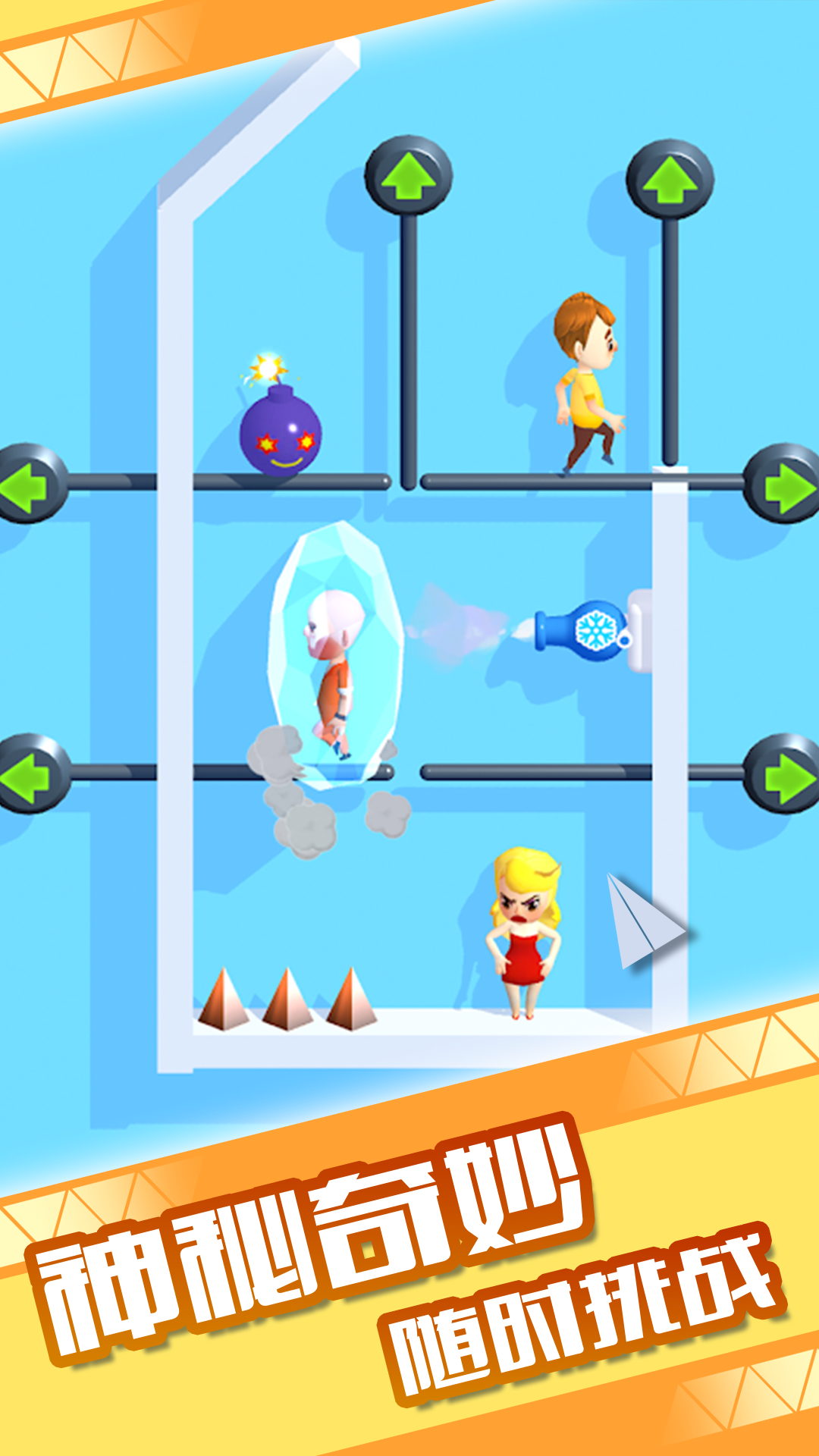 跨越障碍消灭坏人,拯救女主!