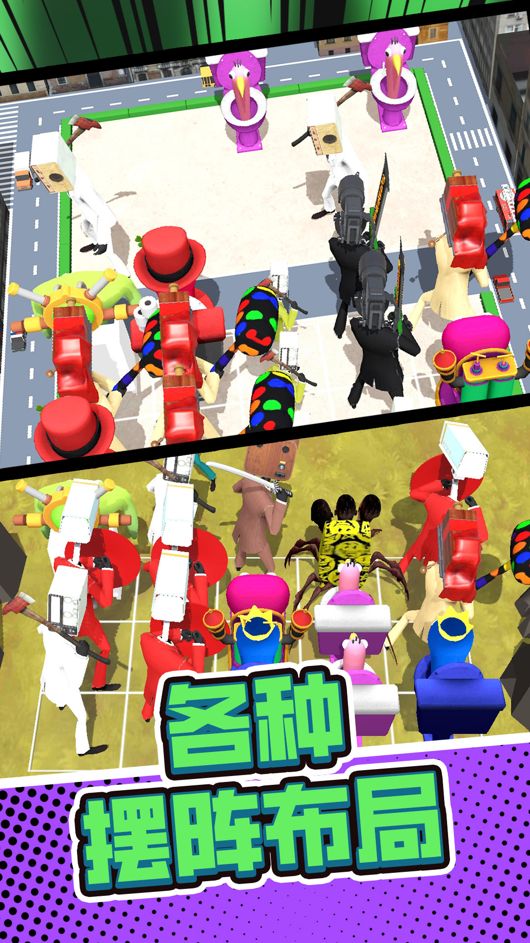 《梦幻岛生存战》是一款具有无限乐趣战斗的合并策略游戏。收集所有可怕的怪物!全部进入您的小队收藏,并成为合并大师。在这个免费的厕所游戏中组建强大的怪物军队。