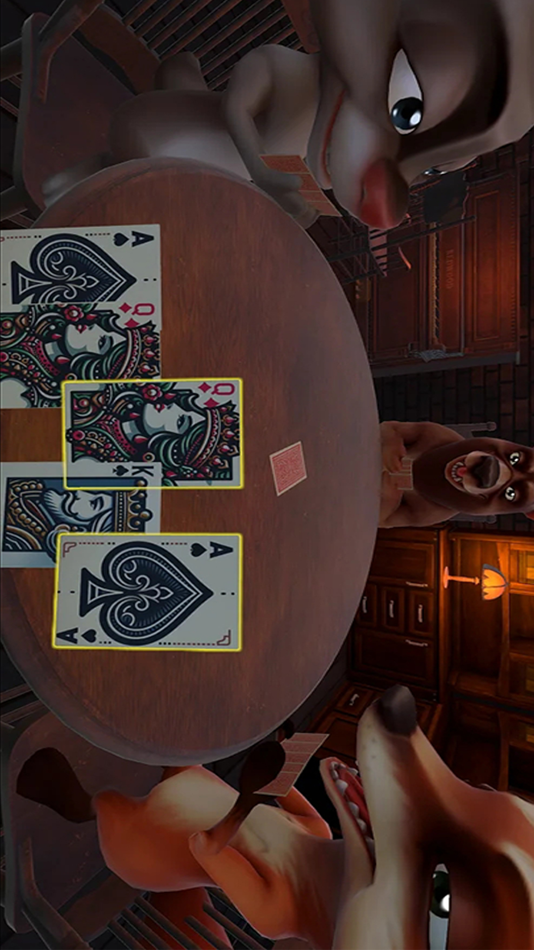进入这个四人桌,玩家将在游戏中通过智慧和谎言来赢得比赛。玩家可以选择不同的角色,每个角色都有自己独特的技能和背景。玩家需要通过巧妙的谎言和策略来迷惑对手并获取胜利。游戏中的交互元素极为丰富,这不仅是一场智力的较量,更是一场心理的博弈。