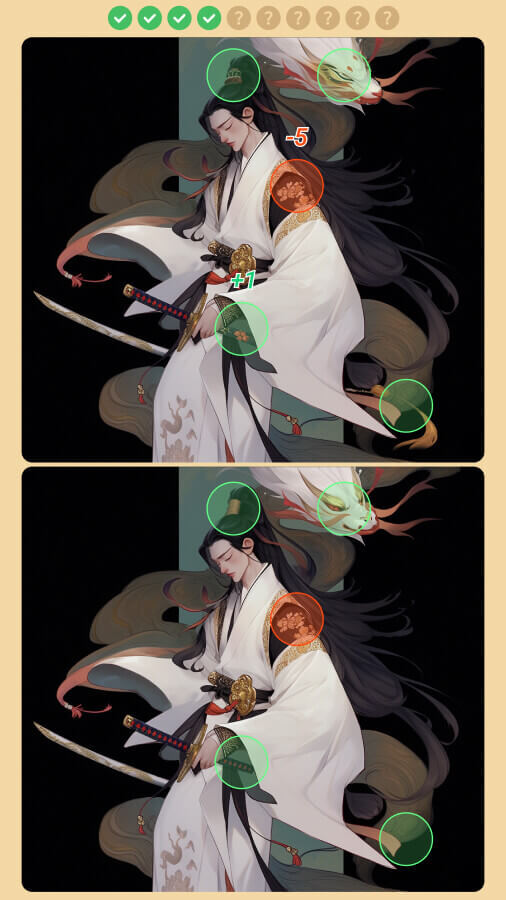《国风找茬王》是一款极具特色的找茬游戏。在这个游戏里,有着最美人物找茬的精彩玩法,它向玩家呈现出许多精致的古代人物形象。这些古代人物充满了国风古风韵味,玩家将在国风古风的独特氛围中体验找茬的乐趣。