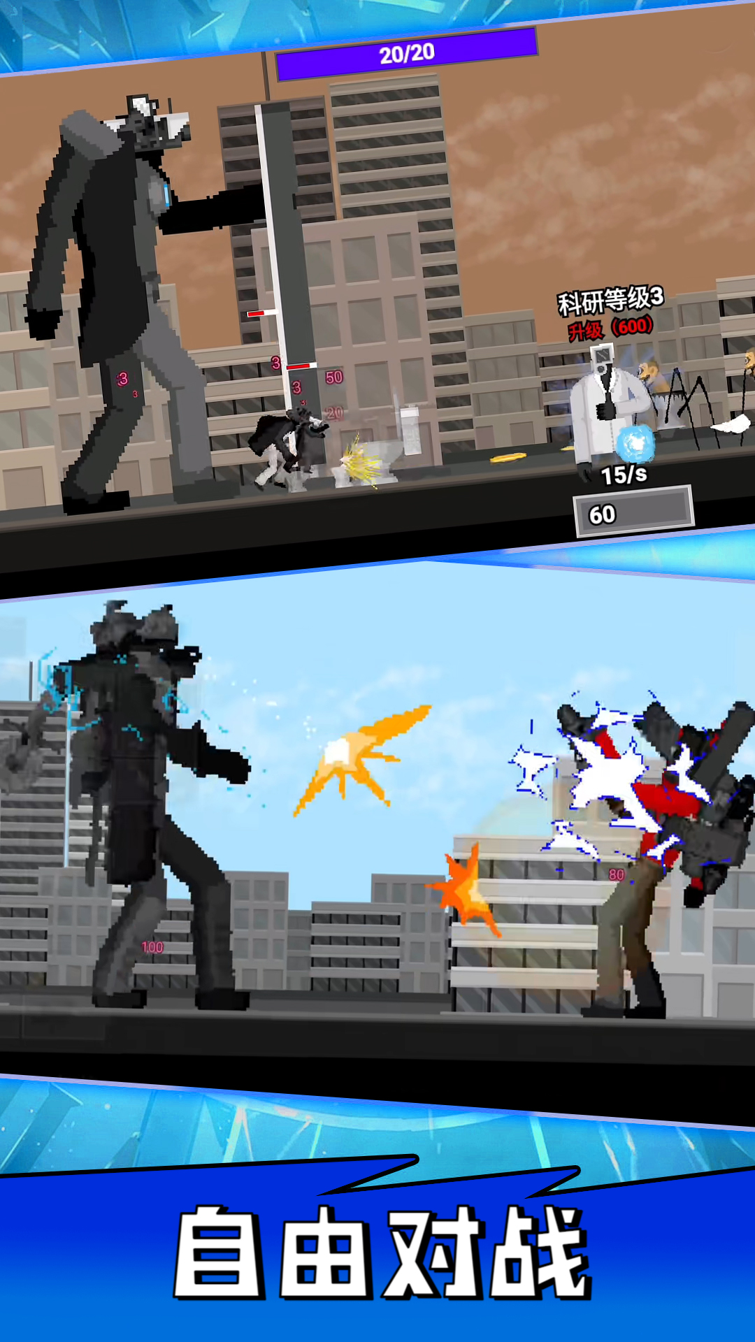 这是一场2D泰塔人对战游戏,保护和平还是选择破坏一切,都在你一念之间,在游戏中你将选择一个阵营,扮演邪恶的时钟人和马桶人。还是正义的音响人,这是两个对立阵营。音响人代表着正义和守护,而时钟人和马桶人则代表着邪恶和入侵。游戏的故事背景设定在一个未来的世界,时钟人和马桶人对音响人的生活造成了巨大的影响,使得音响人的生活越来越困难。为了保护自己的家园和生活方式,音响人决定奋起反抗,与时钟人和马桶人展开了一场激烈的战斗!