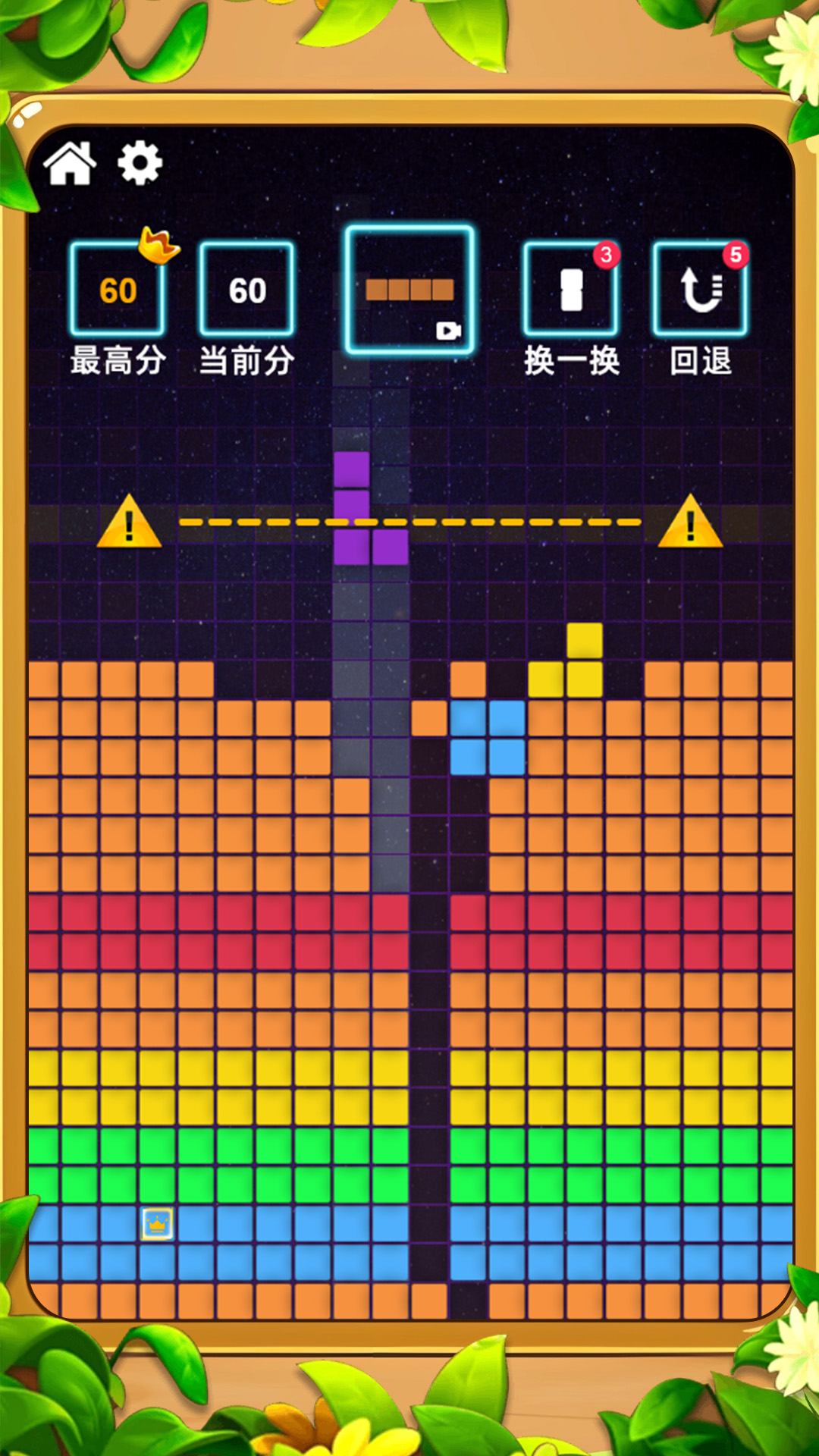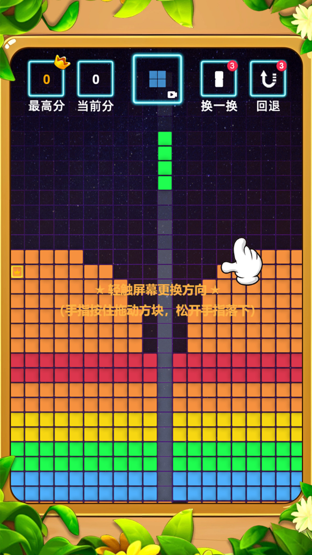 一款消除类游戏,画面简洁运行流畅,搭配欢快的音乐,非常的解压。类似于俄罗斯方块的玩法,可以让小伙伴们很快就上手,并且增添了拖动的游戏模式,在屏幕上将不同形状的方块进行拖动,当可以形成平整的一行或多行的时候就可以消除了。关卡的随机性很强,让小伙伴们每一关都有一种新鲜感。