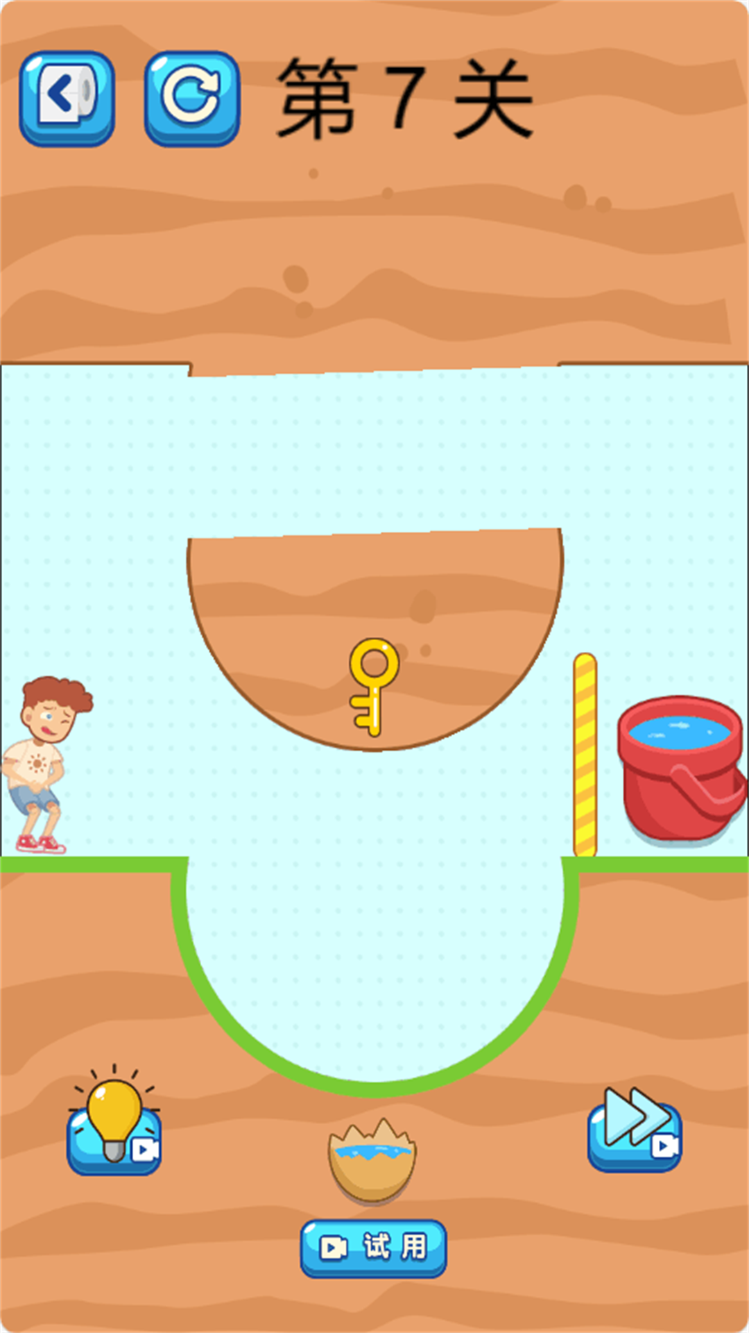这是一款能够通过画线切割来闯关的益智游戏,在角色与厕所之间有一个大坑,需要玩家过程切割石头来填平这个大坑,游戏玩法十分好玩简单,需要通过目测来完成挑战,拥有海量关卡等你来挑战