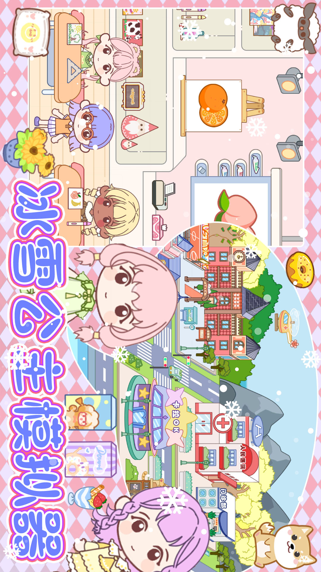 冰雪公主房子:用不同的时尚家具和可爱装饰打造你与萌宠梦想中的房子。再用精美的服饰填满衣橱,打造专属时尚小家公寓!