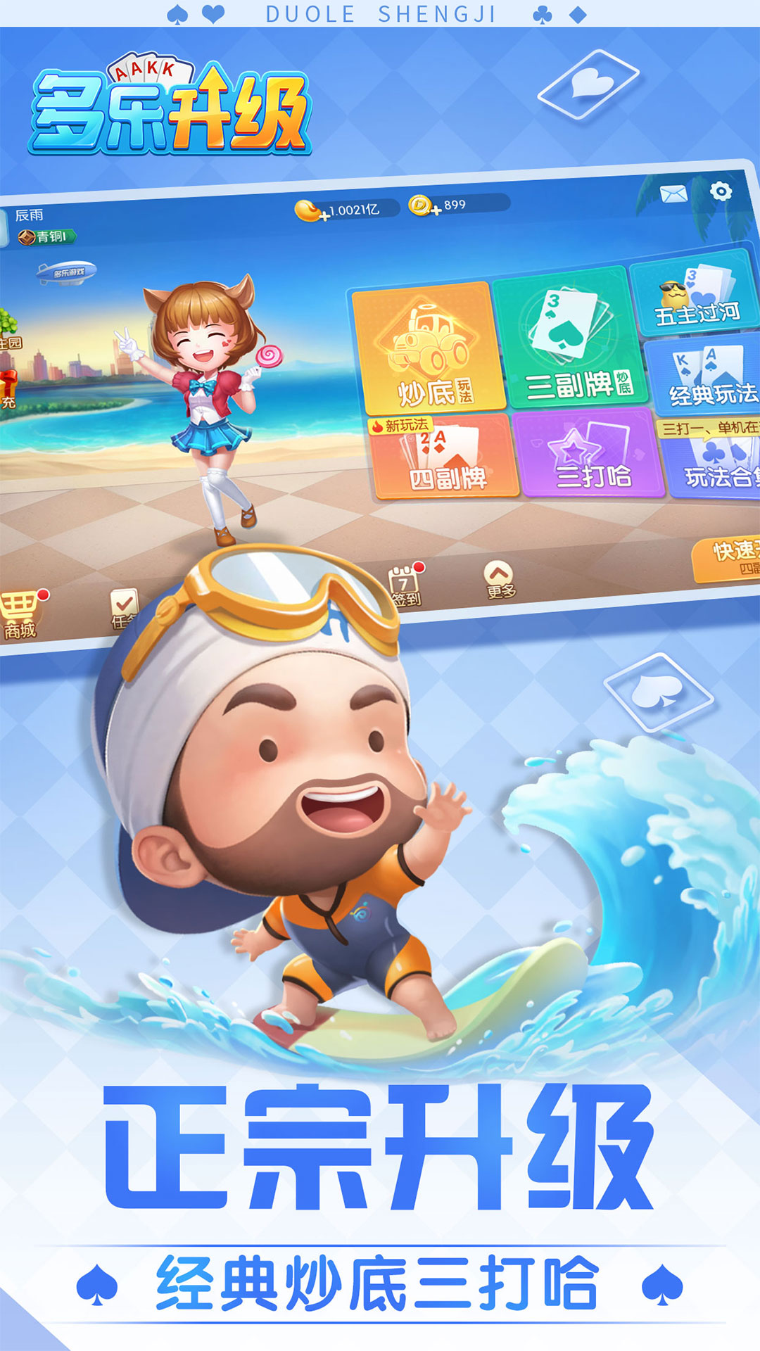 打升级拖拉机,双升80分,玩炒地皮双升就来多乐升级嗨翻天!堪称移动端升级拖拉机游戏的经典力作。