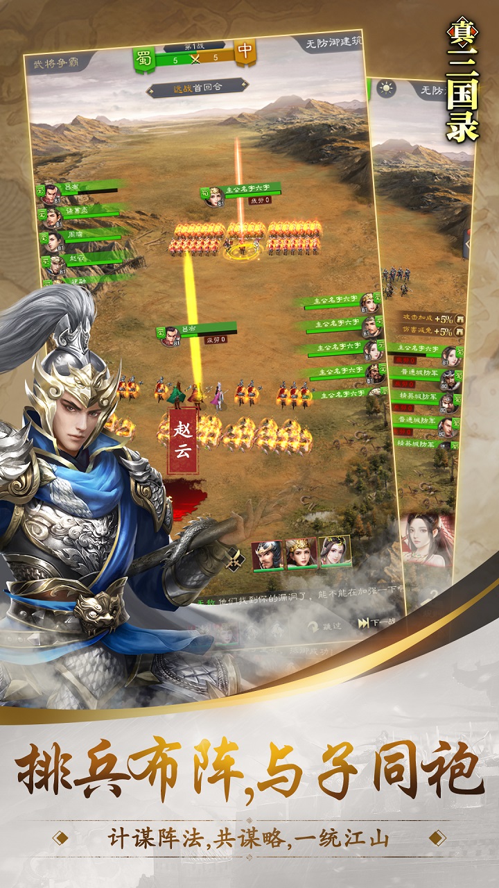 历史名将等待着主公的统领,英雄可自由搭配技能、宝物、阵法、计策等策略性系统。