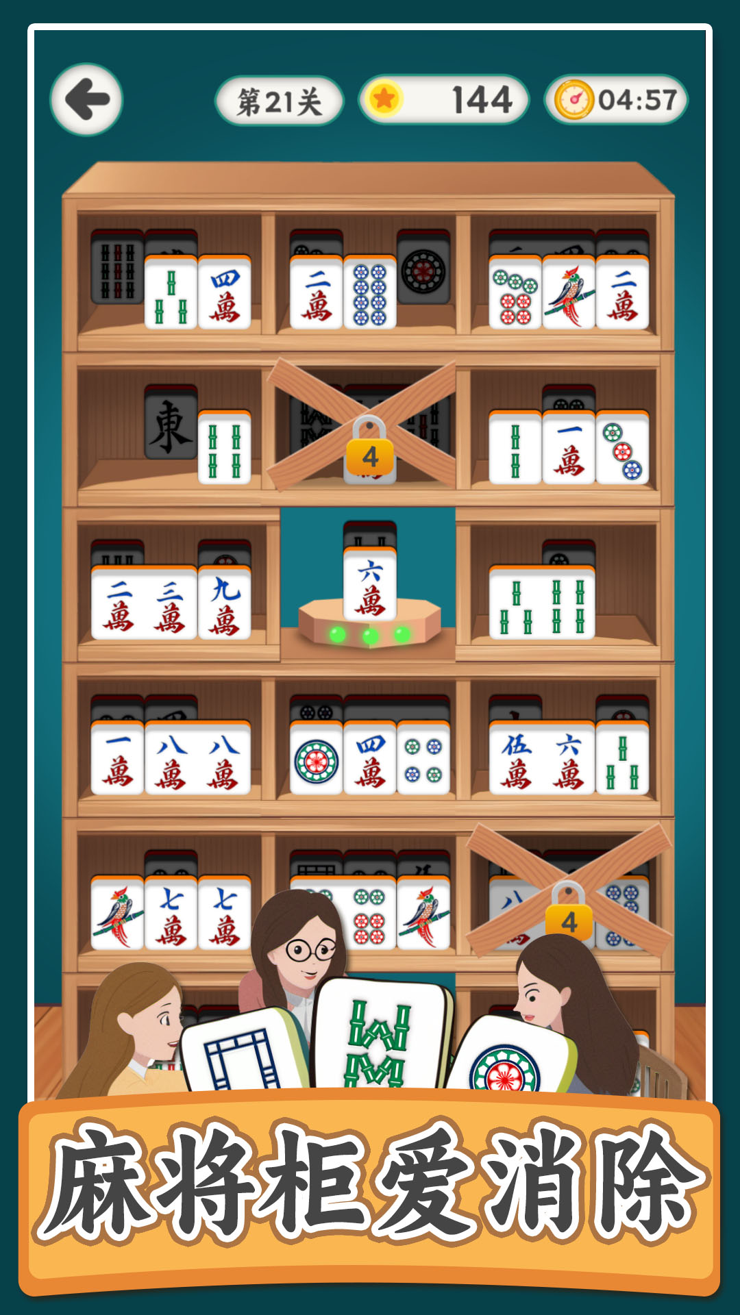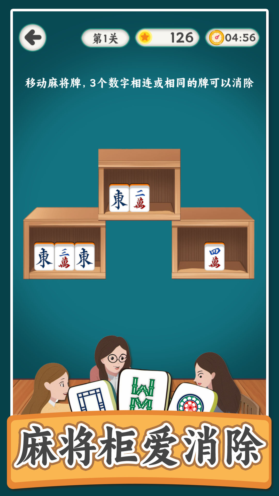 这是一款移动麻将牌的三消游戏,游戏玩法为移动柜子中的麻将牌,把它们组合成三个连续的数字或相同的图案即可消除,每消除一层即可移动后面的一层牌,完成关卡即可获得奖励,游戏有多个关卡难度也会逐渐增加,游戏休闲有趣快来挑战一下吧。