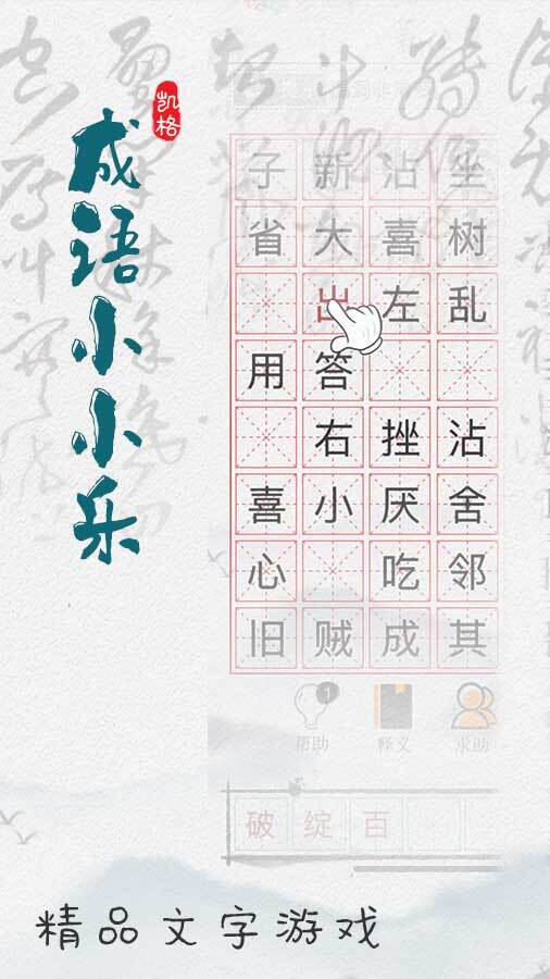 《成语小小乐》是一款精品文字游戏。在这个游戏中,玩家将沉浸于趣味十足的成语世界。它以独特的游戏形式,让玩家在轻松愉悦的氛围里与众多成语进行互动。每一关都像是一次充满惊喜的成语探索之旅,玩家需要运用自己对成语知识的掌握,发挥智慧去解开游戏中的谜题,无论是成语爱好者想要巩固知识,还是新手想要学习成语,《成语小小乐》都是一个绝佳的选择。