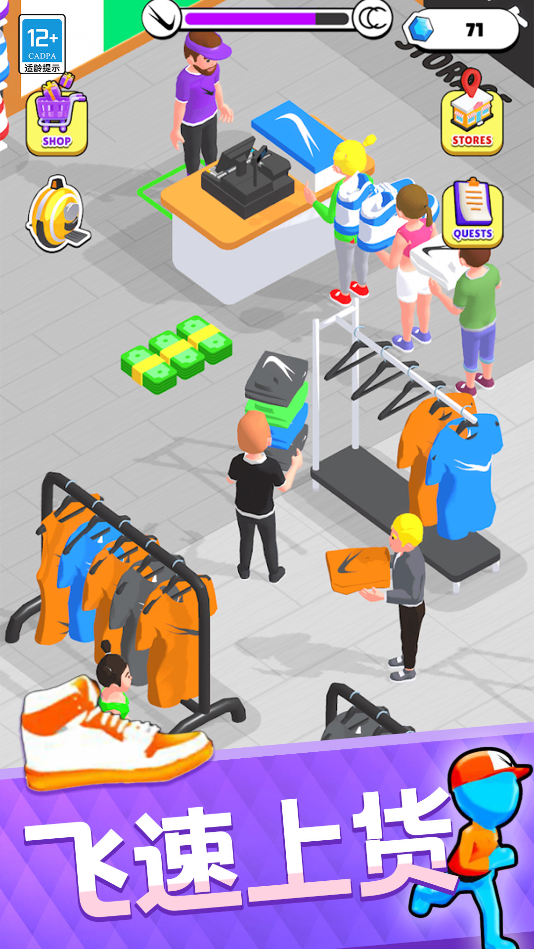 潮鞋达人是一款模拟经营游戏,你将会在这里扮演一位商场老板,通过经营店铺赚取利润,成为一位成功的潮流达人!