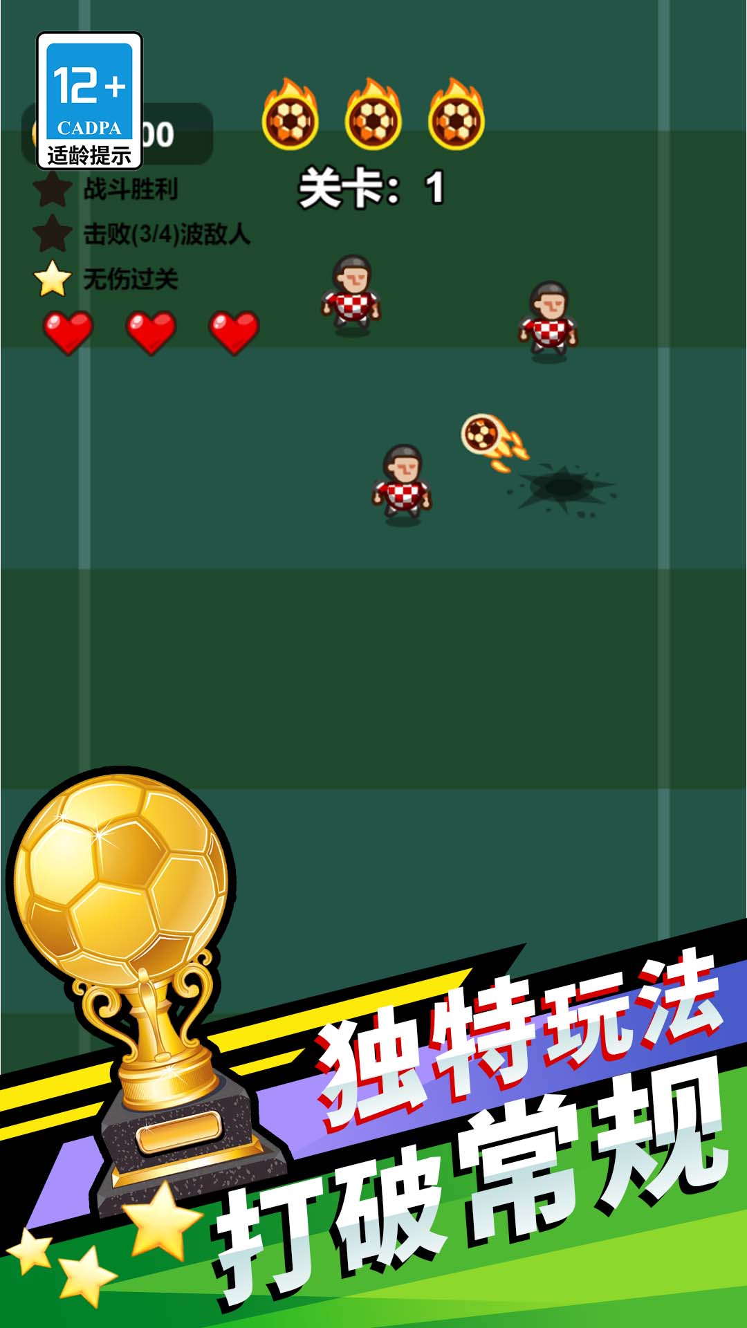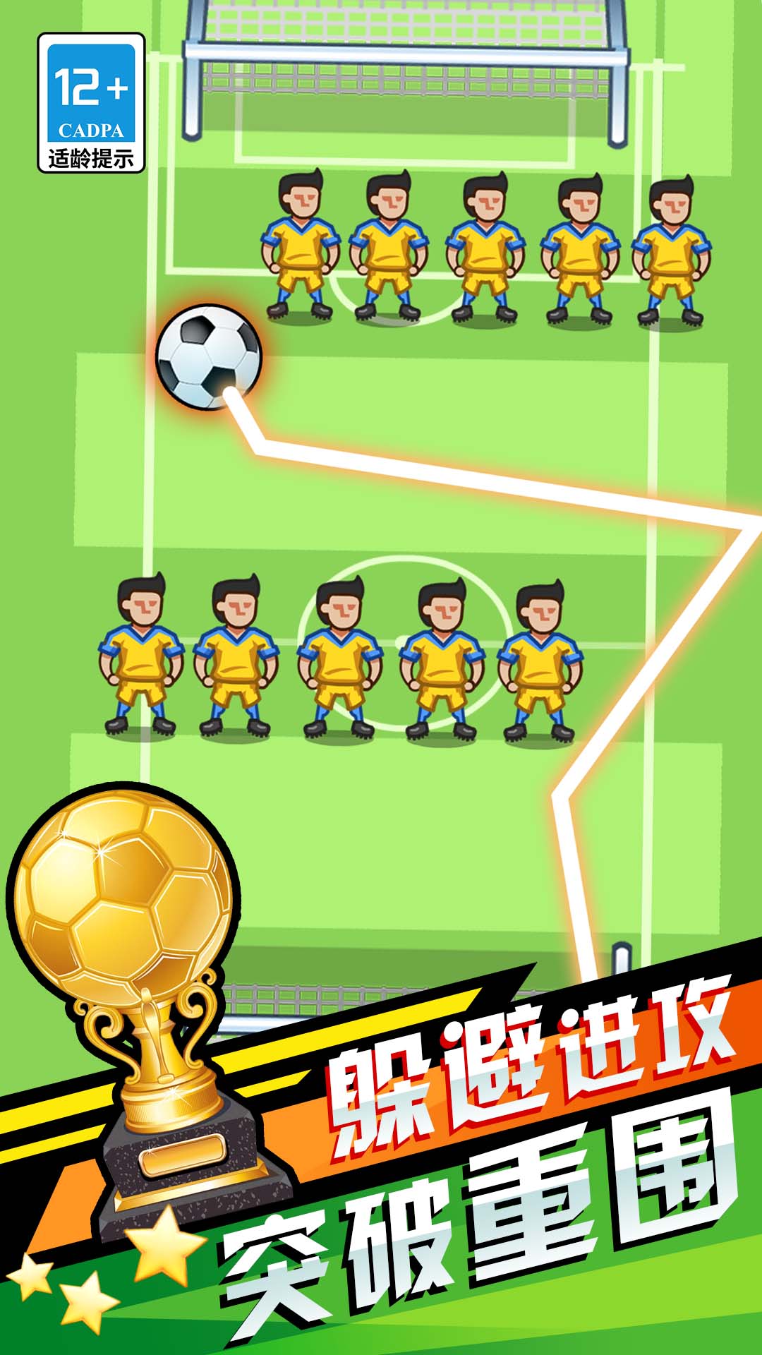 你想不想来踢一场不一样的足球?你是否认为一位成功的足球大师在绿茵赛场上带球直入,过五关斩六将然后直接射门是一件很轻松的事?不好意思,你大错特错了。现在换你来做这位足球大师了,你要做的就是带着你的足球,在对方人海战术的包围下把球踢进对方的门框里!你将面临源源不断的滑铲、抢断,还有一些不可告人的“小损招”!你需要通过及时的闪避同时还要确保你的速度不会降下来!快来体验吧,看看你能带球跑多远!