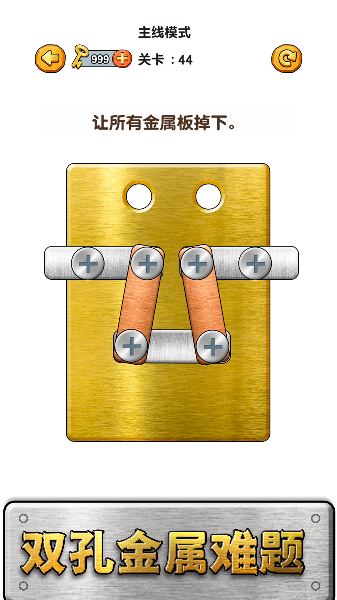 游戏中包含多个高难度关卡,需要开动你的大脑,通过打螺丝将所有铁板全部拆除,巧妙解开游戏的谜题。