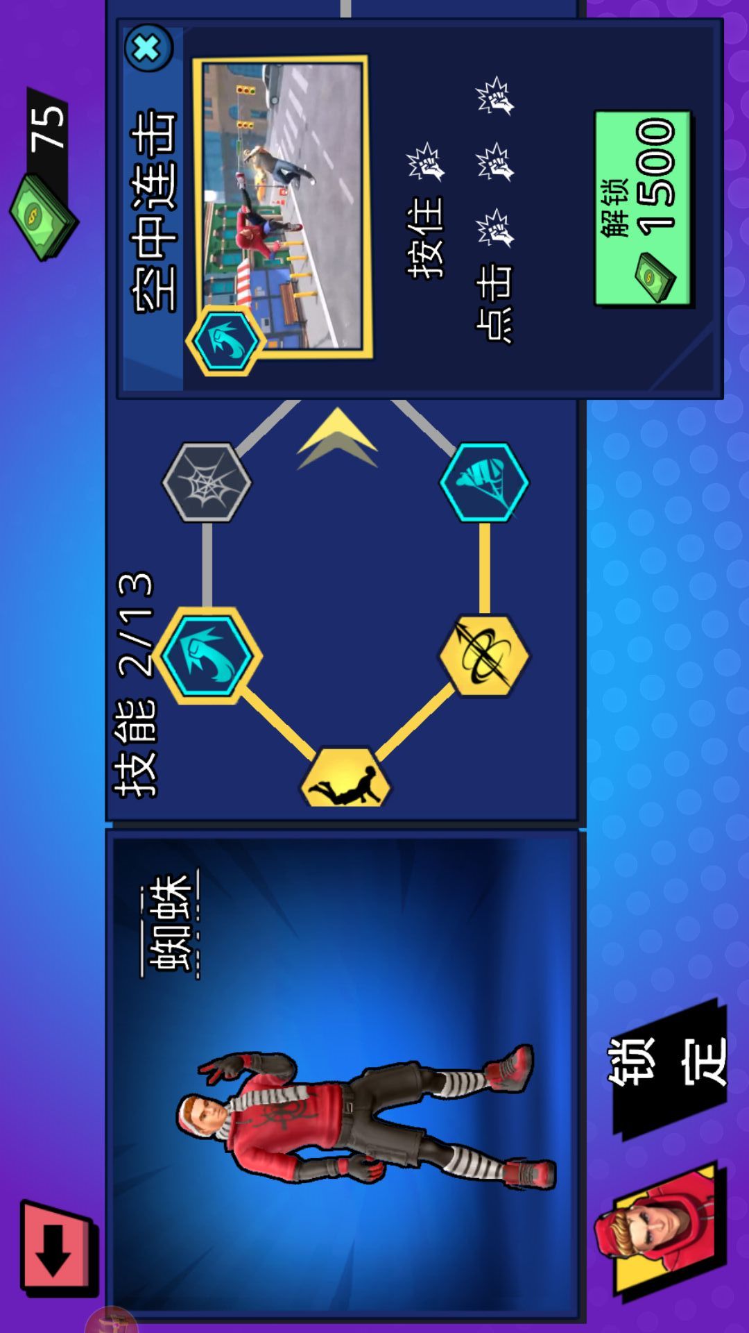 拥有蜘蛛超能力的超级英雄 放射性蜘蛛的咬伤开始了该人体内的突变,并启用了超能力。蜘蛛的力量包括超人的力量,像“蜘蛛感”一样提醒他注意危险的第六感,完美的战斗技巧以及超级英雄的速度和敏捷性。 创造新技能 建造大量的设备来补充蜘蛛的力量。