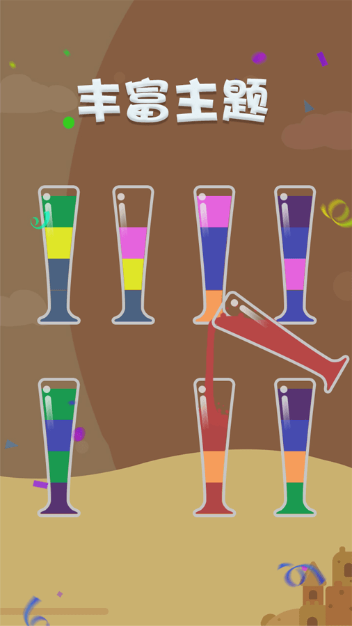 《我倒水贼棒》是一款趣味十足且极易让人上瘾的益智类游戏哦!在游戏里,你需要尝试对玻璃杯中的有色水进行分类操作,一直到每个玻璃杯中所盛的水的颜色均为同一种颜色为止。
