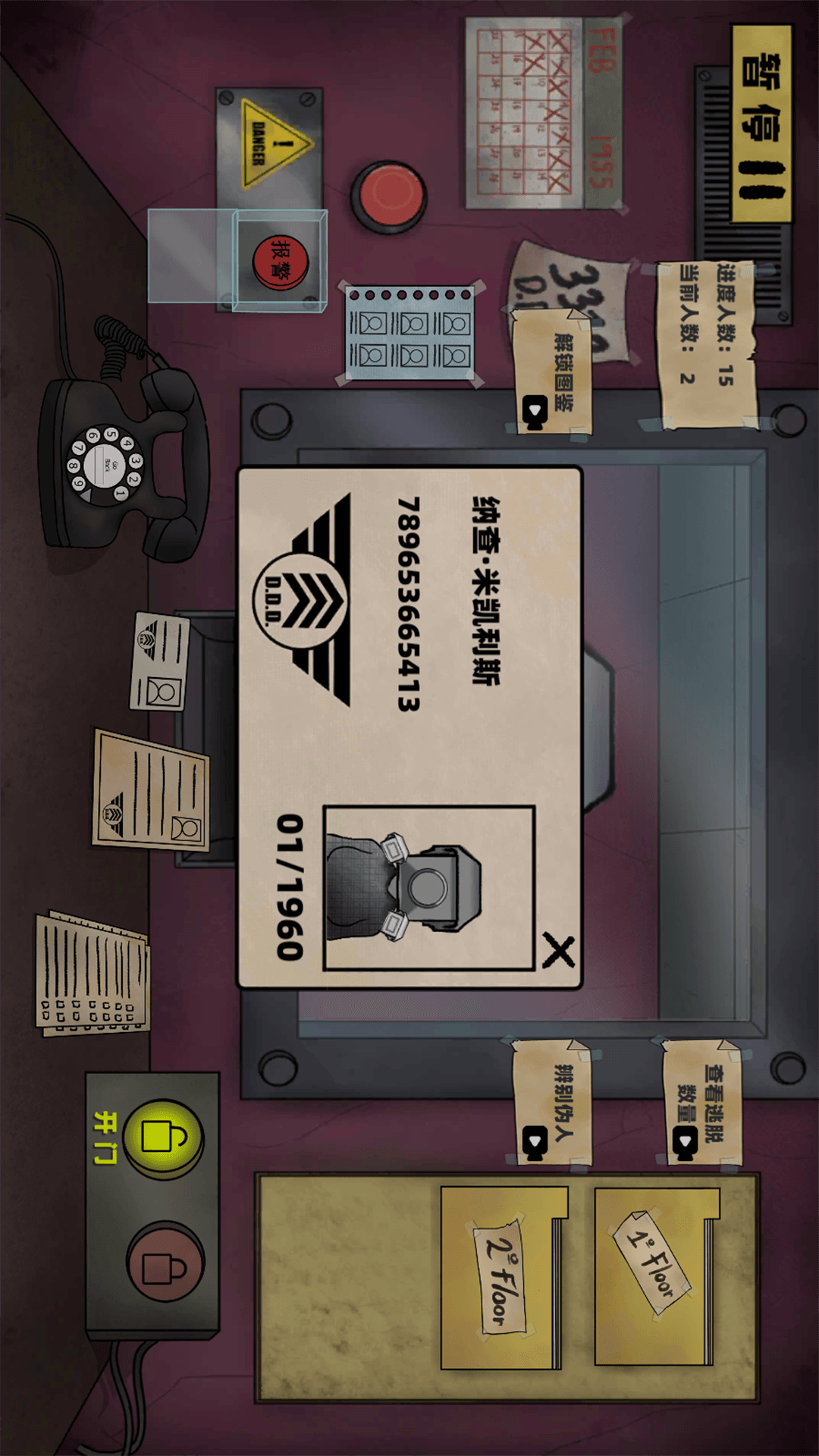 你是一个大楼保安,保卫业主的平安。需通过对邻居的身份进行辨别,找出其中的诡异之处判别谁是伪人,将伪人拒之门外,不要让伪人进去大楼!