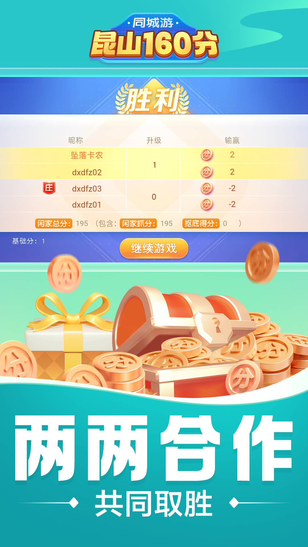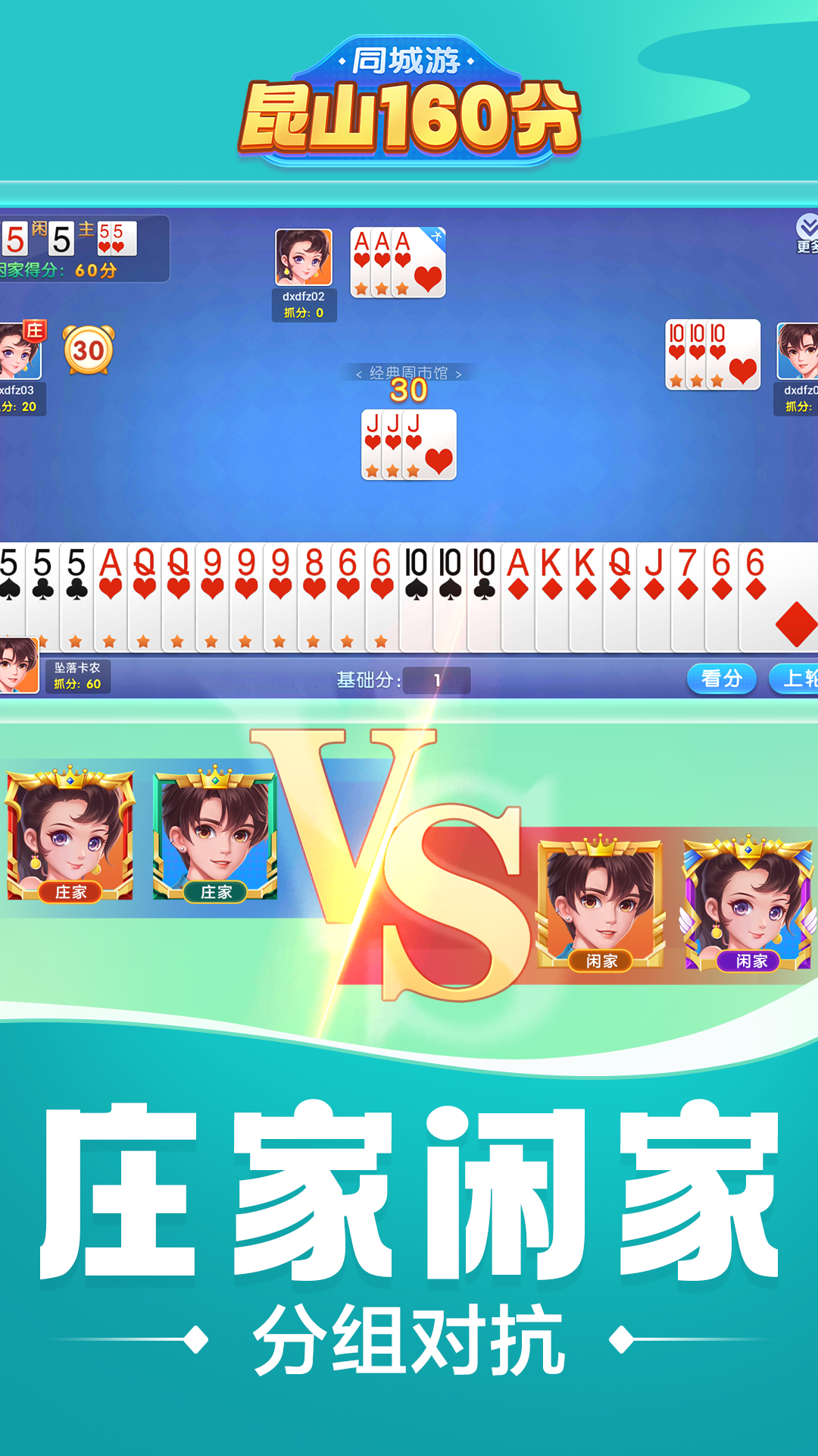 同城游昆山160分是昆山地区盛行的一种红五类扑克游戏,昆山160流传千年之久。采用四副扑克(去掉2、3、4)、四人竞赛,规则简单,打法多样。简单的规则又深含着朴素的人生哲理。所以,昆山160分也和昆山的其他传统娱乐项目一样,每天大家都抽空聚在一起玩上几把,过上一把瘾。