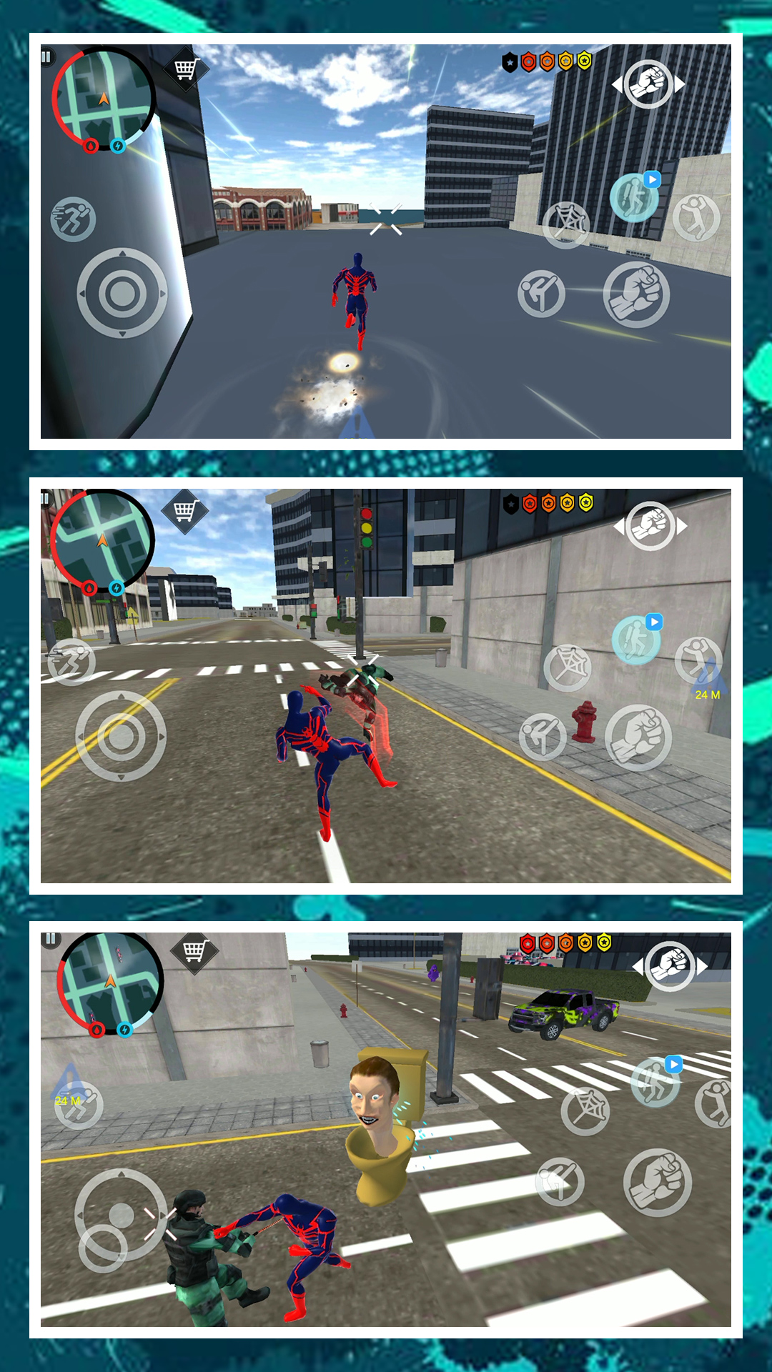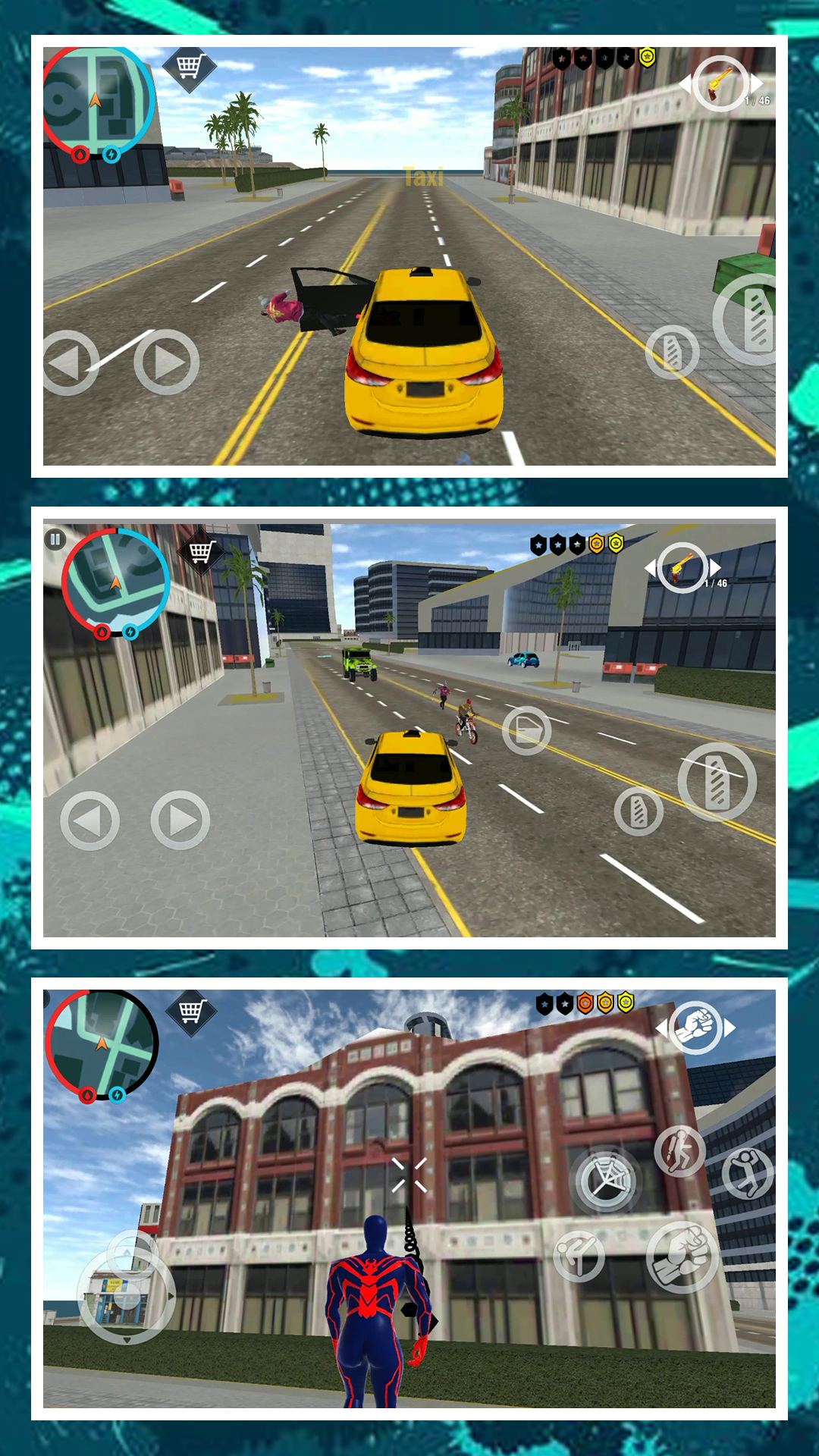 一款蜘蛛侠形象的动作冒险游戏,玩家在游戏中扮演蜘蛛侠来进行战斗,你需要做的就是控制你手中的蜘蛛侠角色开始打击犯罪,把犯法的人全部抓起来,并交给警察。蜘蛛侠有着大量的格斗技巧可以学习,掌握它来快速击败罪犯吧。