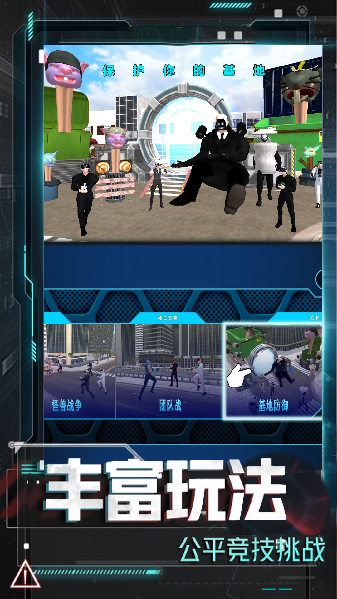 在巨人厕所怪物入侵期间,你扮演饼干人王国的一个无名的孩子,在学校旅行期间被绑架到一个恐怖生存竞技场。从你被抓的那一刻起,你必须拿起你的枪,击败各类来袭的怪物敌人,尽情享受与监控人怪物猎手组队,击倒胡安猫、纳布和蓝色怪物的乐趣。