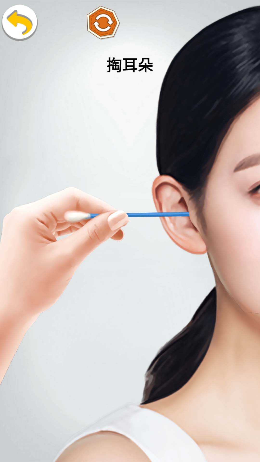 《采耳的乐趣》这是一款休闲模拟类小游戏,沉浸解压式体验身体部位清洁,极度舒适游戏体验,小姐姐耳朵许多污垢,请合理使用工具,帮助小姐姐清理干净。