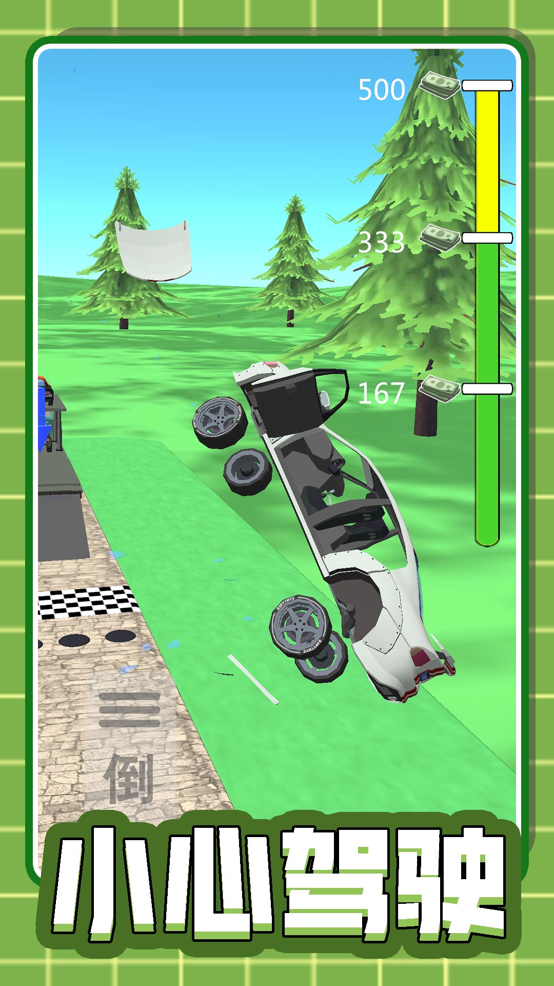 一款赛车闯关小游戏,在游戏中你将驾驶着你的爱车前往终点。游戏的玩法非常精彩刺激,途中你会遇见各种各样的障碍物和陷阱,这个时候就非常考验玩家的车技了,在游戏中还可以漂移。游戏玩法精彩有趣,感兴趣的小伙伴快来下载试一试吧。