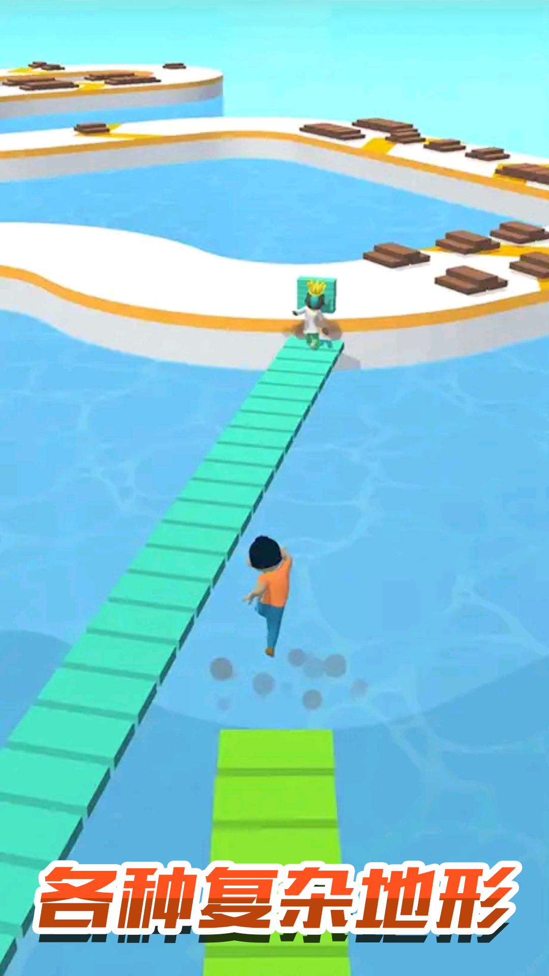 欢乐搭桥是一款收集砖头,跟对手赛跑!搭建桥梁,直达终点!超级简单的游戏玩法,极易上手。你厌倦了正常的跑步比赛吗? 尝试欢乐搭桥参加跑步比赛,在那里你可以快捷取胜。收集砖块、木板或甲板并将它们堆成一堆。然后通过建造桥梁走捷径。通过这种方式,您可以比其他竞争对手跑得更快并赢得比赛。不要太自信,如果一堆砖头不够连接2个点,你会摔倒的。请记住堆叠足够的甲板来完成地图。