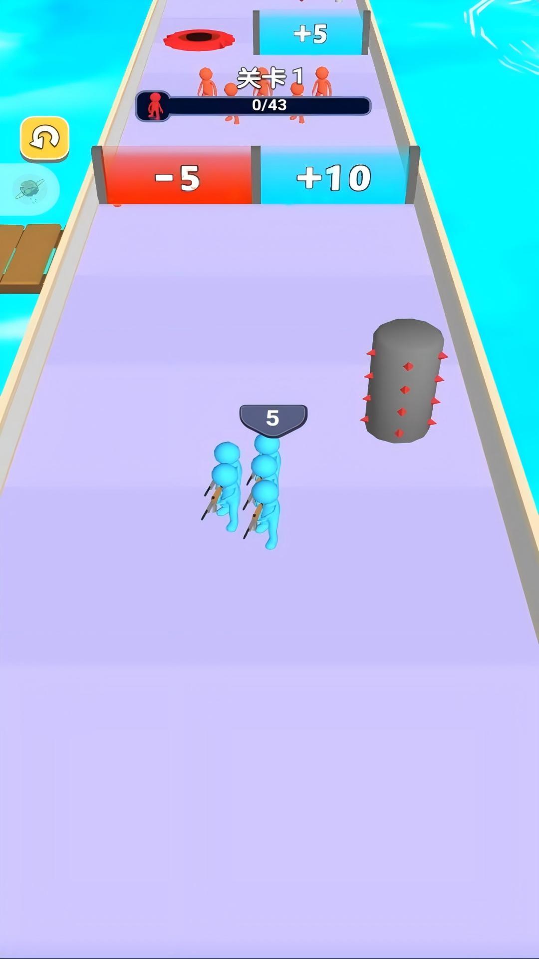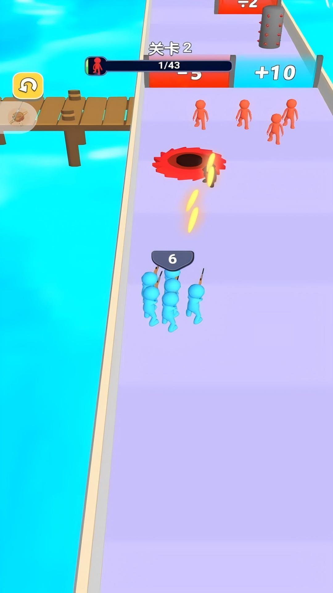 玩家通过操控主角躲避障碍物积累勇者数量获得更多能和敌方人数对抗的人数。玩家获得的勇者越多,积累的战斗值就越高,最后冲破终点的奖励结算就越高。战胜即可得到更多奖励。