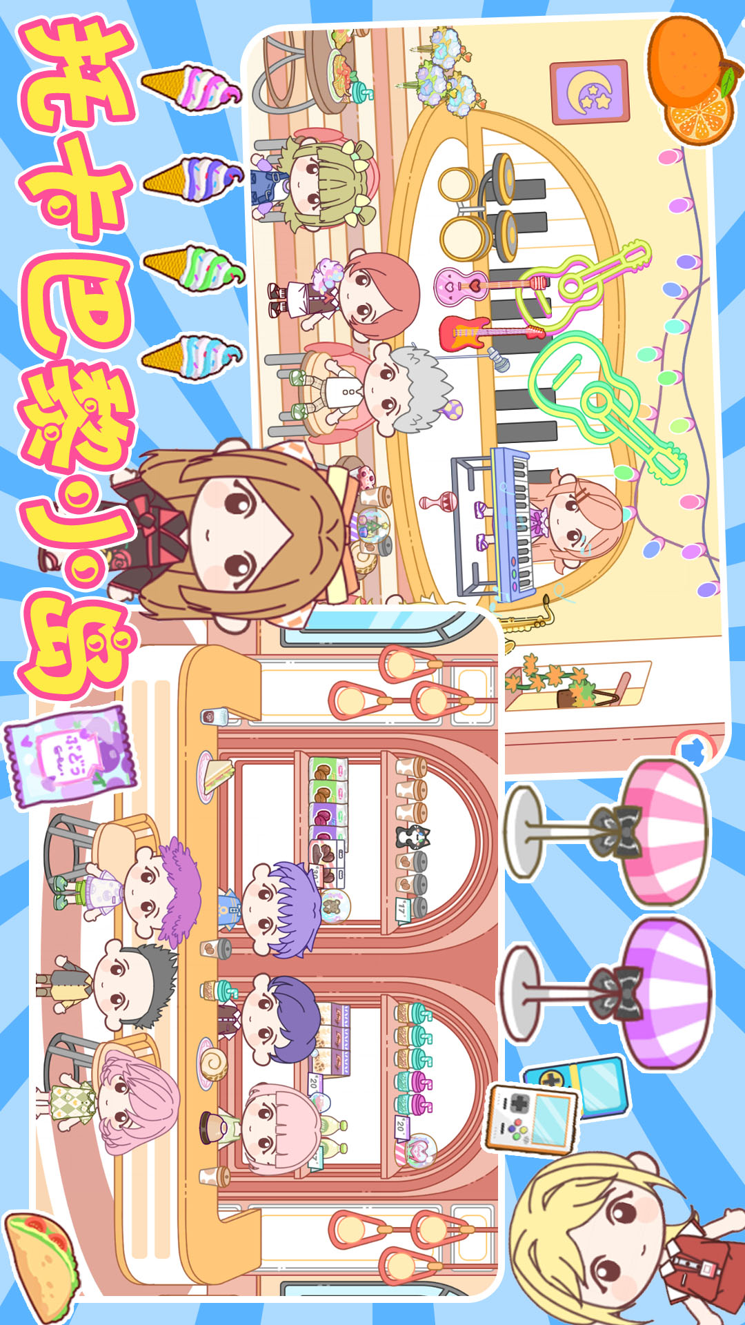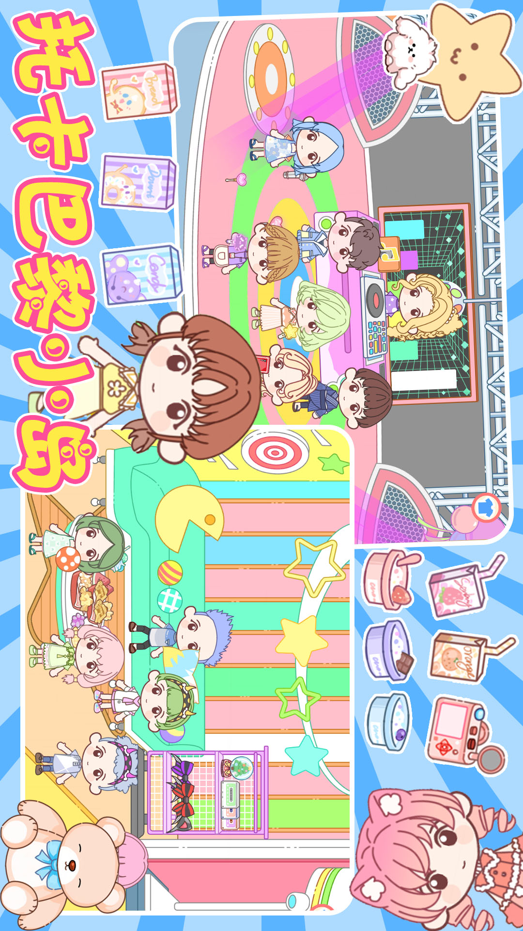 -百种场景:公主城堡、购物中心、游乐园、美装沙龙、水上乐园、度假区(海滩&小岛、观光区)等等......
