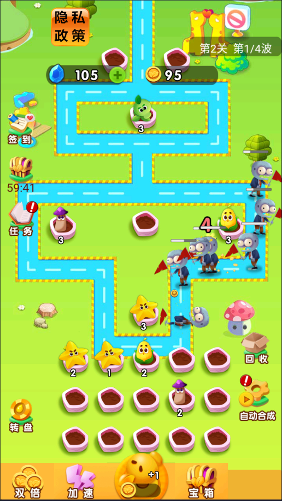 《变异植物战僵尸》是一款充满策略与创意的单机休闲合并塔防游戏。玩家将运用独特的变异植物,抵御一波波来袭的僵尸,保护自己的花园不被侵占。通过合并植物提升战斗力,体验塔防游戏的乐趣与成就感。加入《变异植物战僵尸》,运用你的智慧和策略,合并变异植物,抵御僵尸的入侵。
