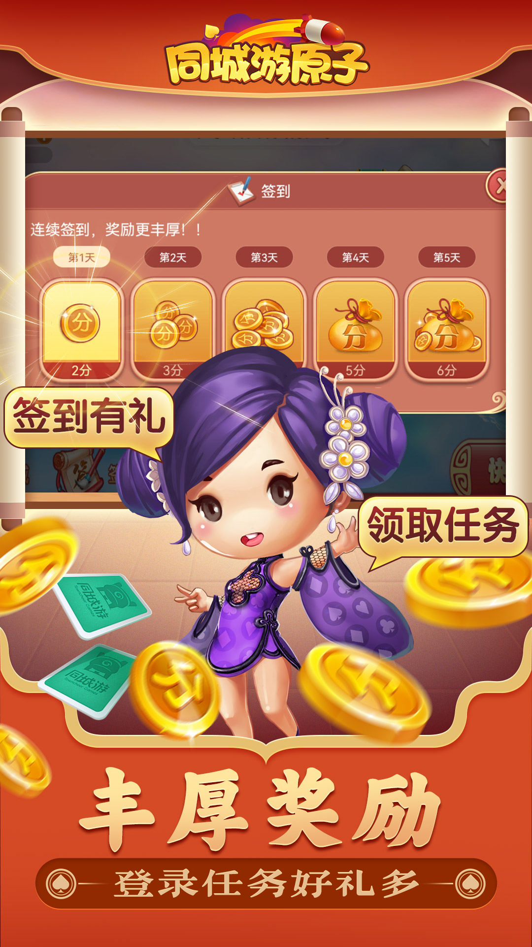 同城游原子签到、对局任务多样,精彩等你解锁。