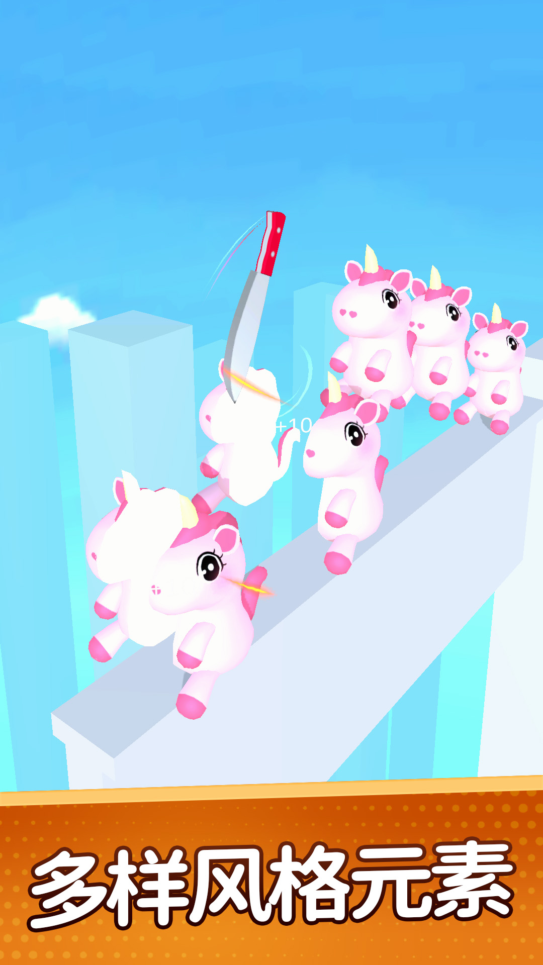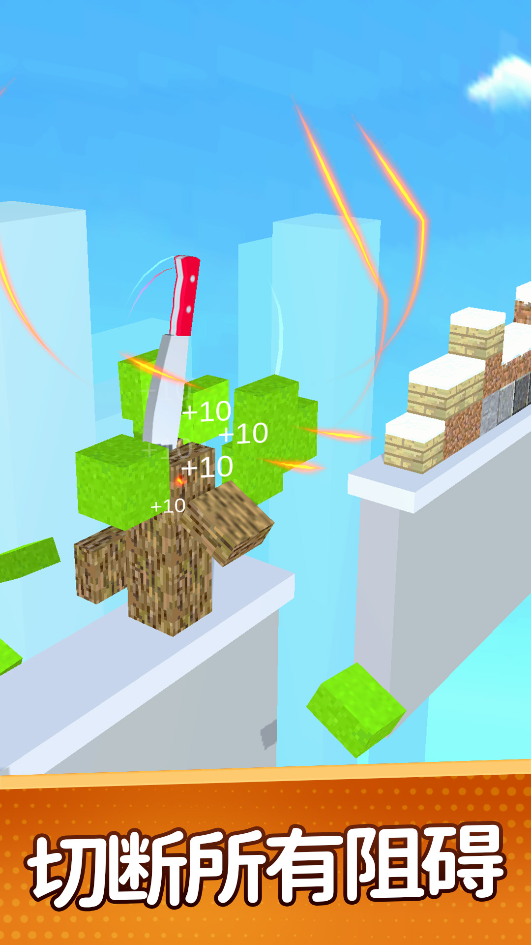 把刀翻转起来,以“狠”帅的方式切割障碍物!轻触并按住或释放以控制刀来切开你路上所有可切割的物体。尽量把它们都切开,但不要忘记那些危险障碍物。