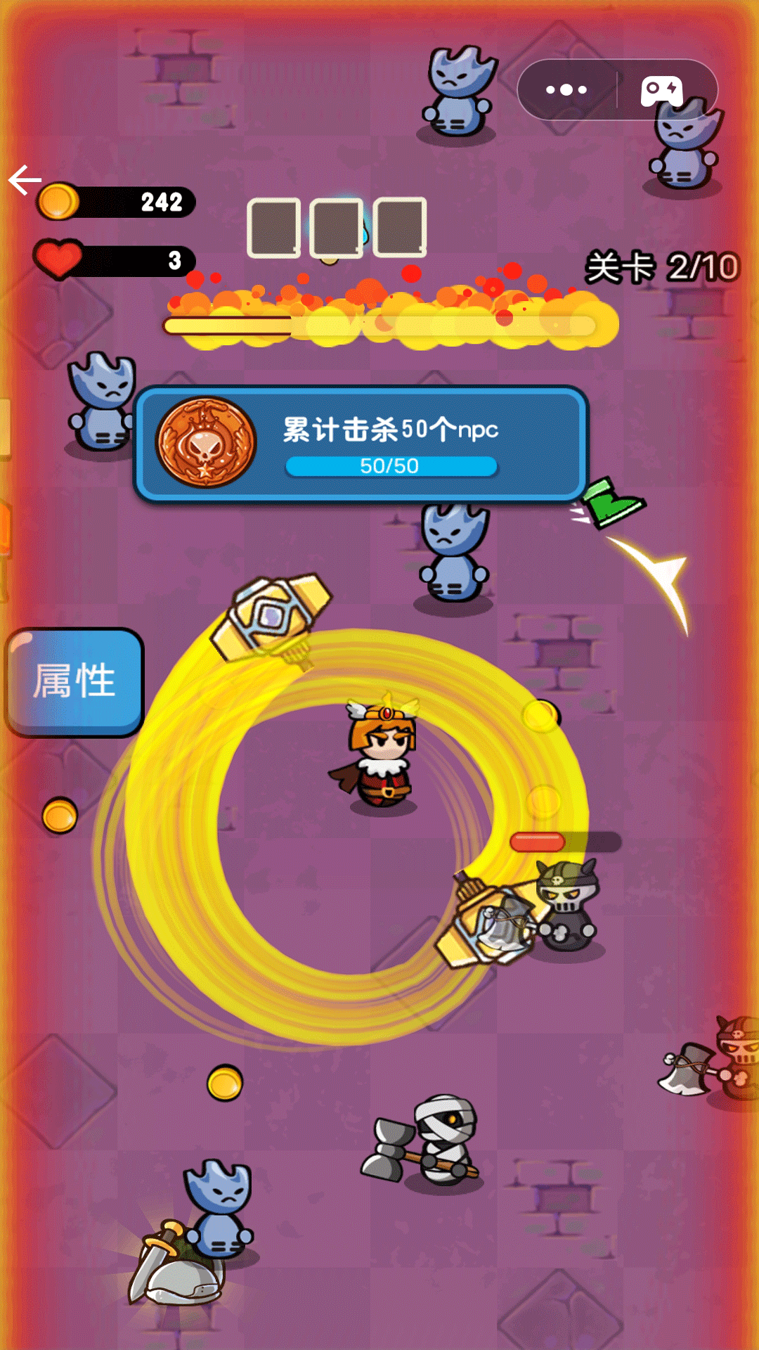 《勇士大闯关》是一款紧张刺激的动作冒险游戏。在游戏中,玩家扮演一位勇猛无畏的探险者,置身于危机四伏、怪兽横行的奇幻世界。在能量尚未耗尽的关键时刻,你必须紧随那指引前行的神秘光标,破解重重迷雾,找寻隐藏在关卡深处的钥匙。同时,运用灵活走位与防御技巧,以及独特的水蛋等战斗技能,与各路凶猛怪兽展开激烈对决,力求将它们逐一歼灭。每消灭一关的所有怪兽,便可开启通往下一关的大门,继续你的冒险征程。然而,每一次被怪兽攻击都会损耗你的能量,当能量值降为零时,就意味着游戏挑战的暂时终结。因此,智慧、策略和勇气缺一不可,只有不断强化自身实力,合理利用关卡中的仙灵菇等增益道具,才能在这场惊心动魄的闯关之旅中走得更远,直至揭开隐藏在重重关卡背后的秘密真相。
