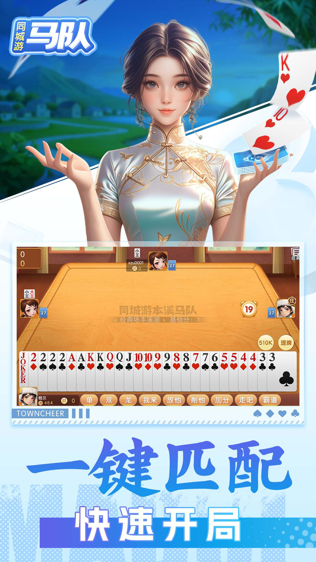 同城游马队是一款牌类510k(五十K)游戏,4人的扑克游戏,在辽宁本溪地区广泛流行。同城游马队以其特色的游戏规则和出牌技巧深受当地人们喜爱。独特的玩法,较高的娱乐性,视为当地人茶余饭后不可缺少的娱乐活动。